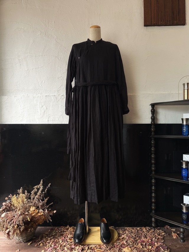 肩幅 36.5cm 身幅 47cm 着丈 128cm 袖丈 55cm suzuki takayuki cache coeur dress A261-27 Size 01 Color black Quality linen 100%