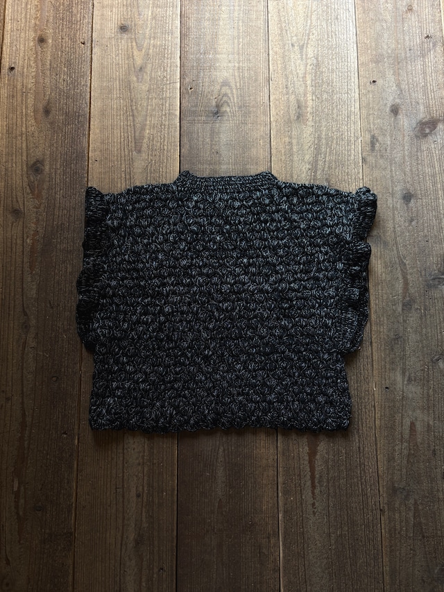 身幅 48cm 着丈 51cm BUNON hand crochet gilet Size F Color black material wool 95% silk 5%