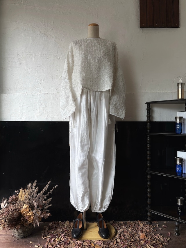身幅 670cm 着丈 51cm 裄丈 77cm BUNON embroidery blouse Size M Color white material silk 100%