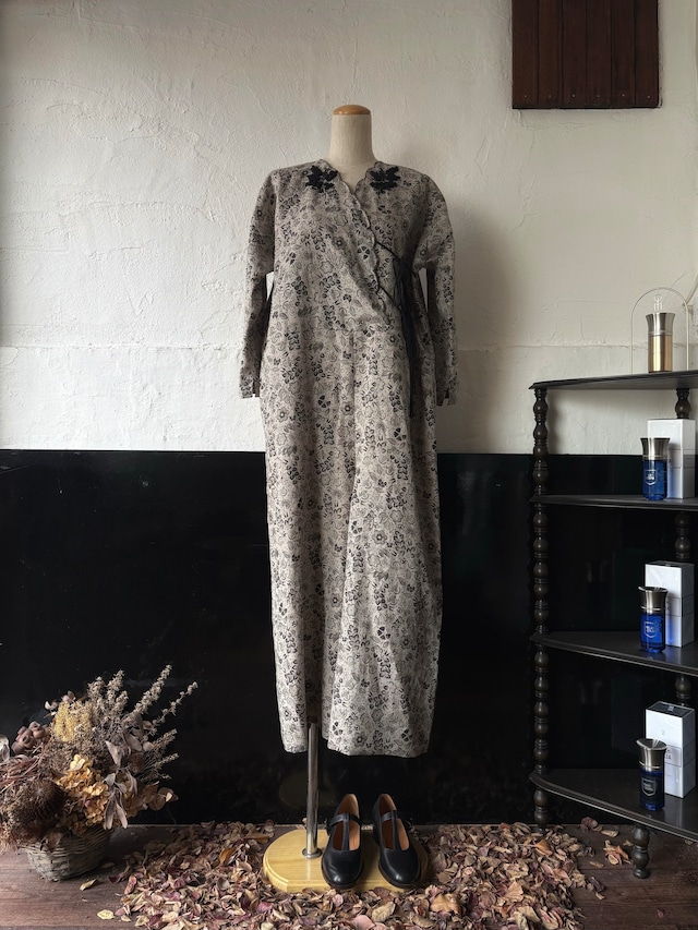 Mathilde(マチルド) 架空の花の名前。 インド、日本、フランスの3国共通の伝統的な更紗模様をイメージしデッサン。 京都の機械捺染。 ネックレスが付属します。 身幅 77cm 着丈 120cm 裄丈 77cm TOWAVASE Mathilde dress Size F Color black Quality silk 100%