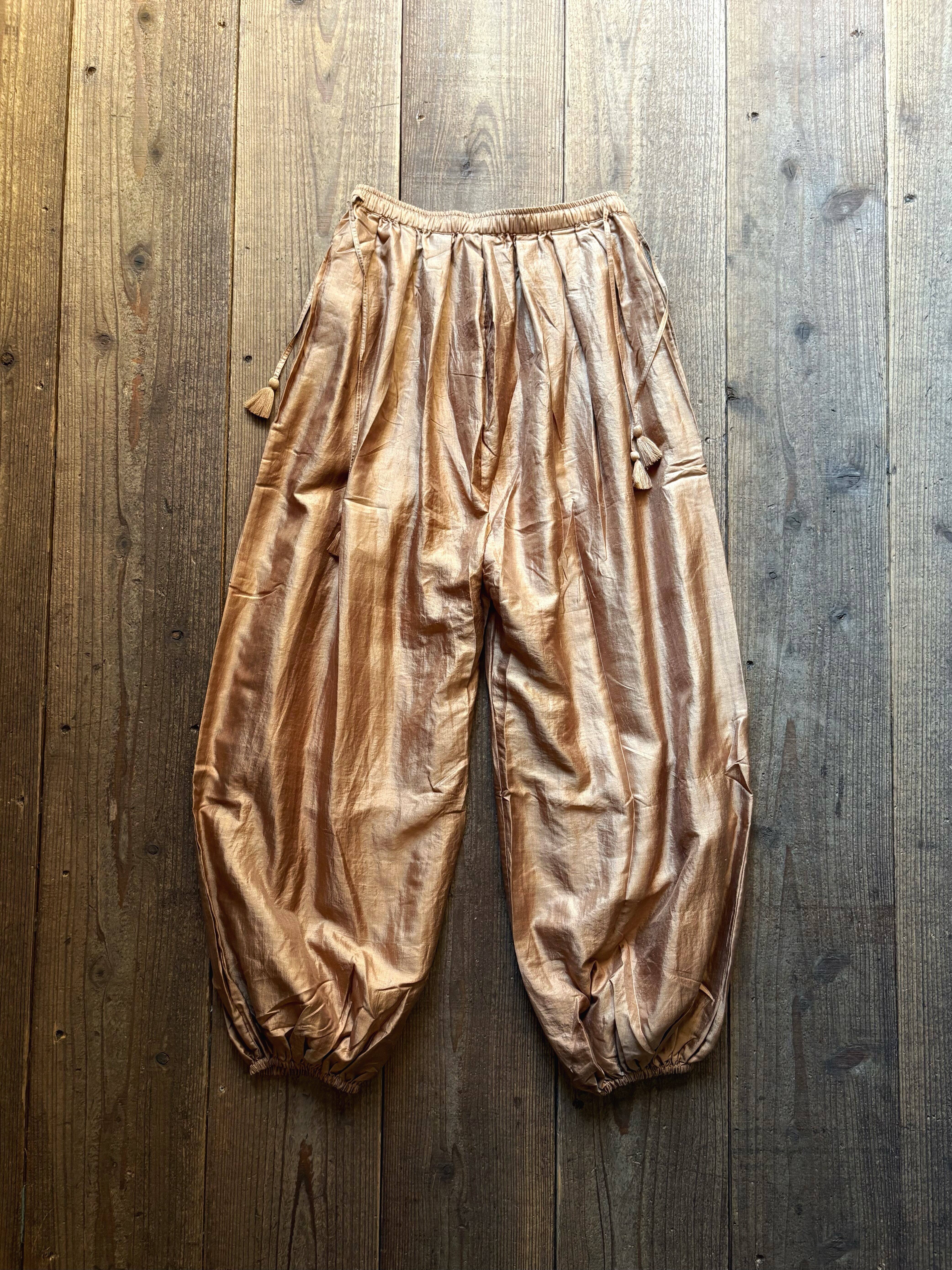 裾にかけて弧を描いたバルーンシルエットが特徴の新型パンツ。