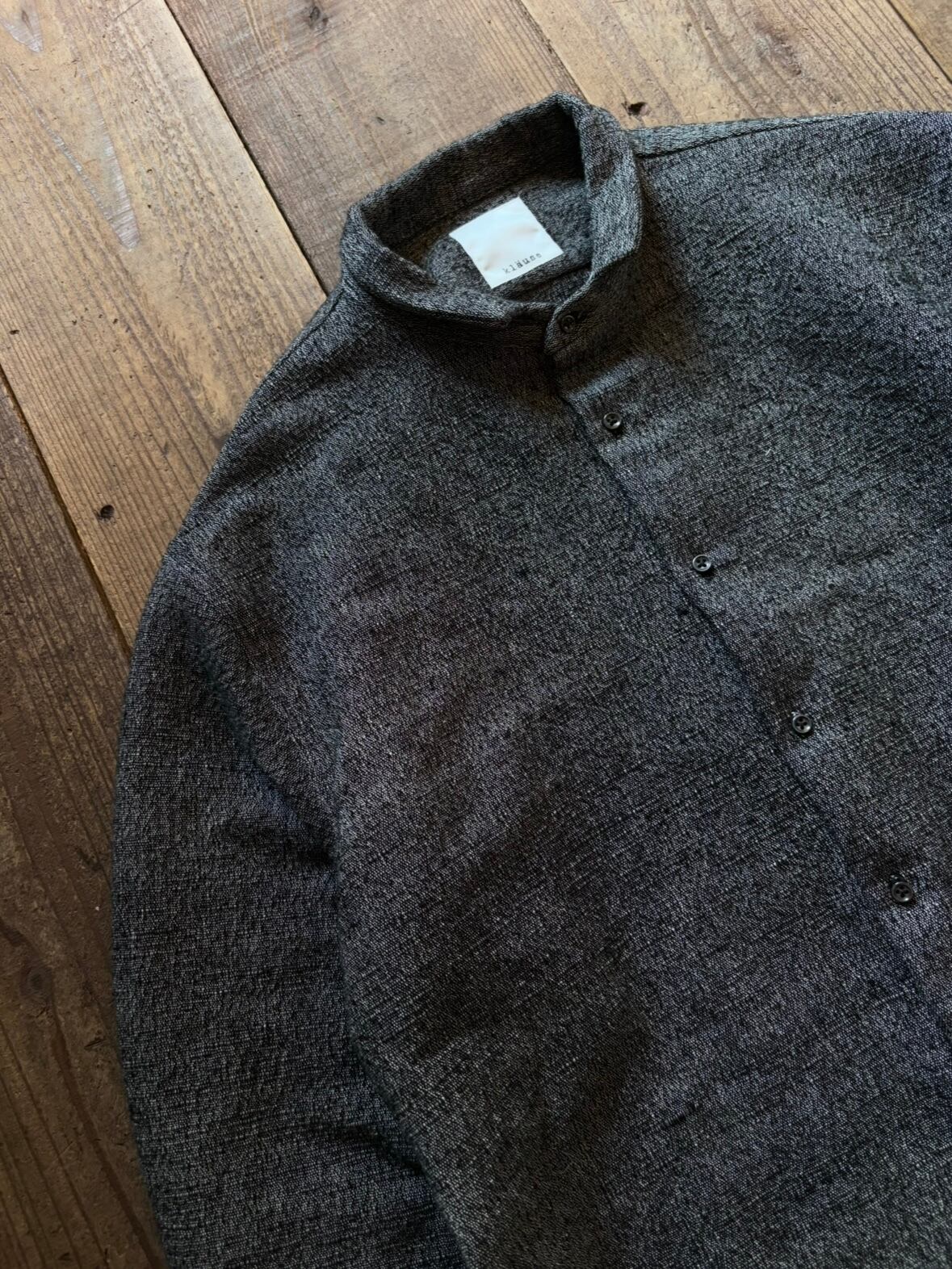 こちらの衿のデザインは100年位前のオーダーメイドのシャツに見られる二股のスタンドカラーをベースしています。