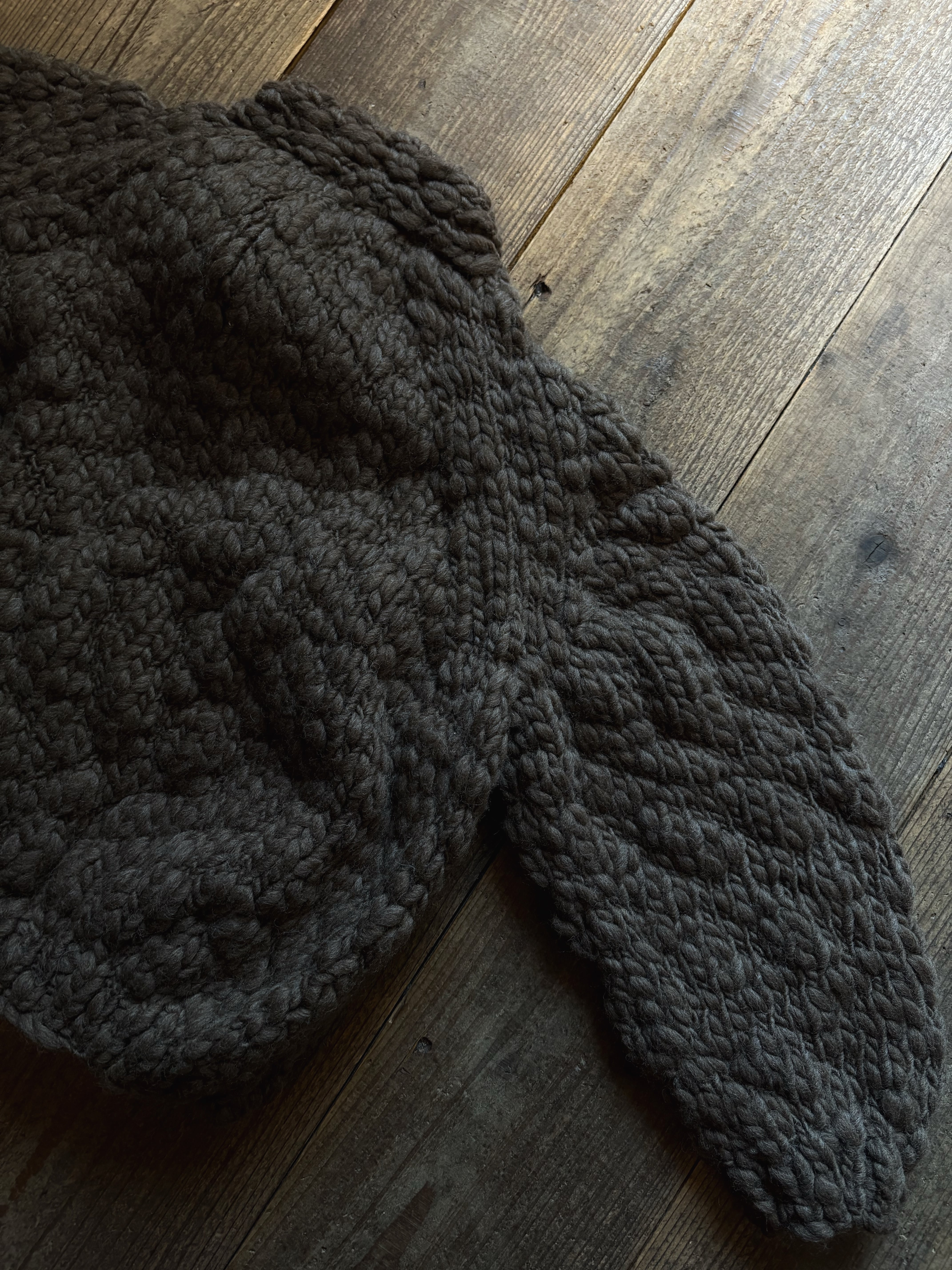 無染色のコリデールウールを使用し、ウルグアイの職人が手編みで編み上げたニットカーディガン。