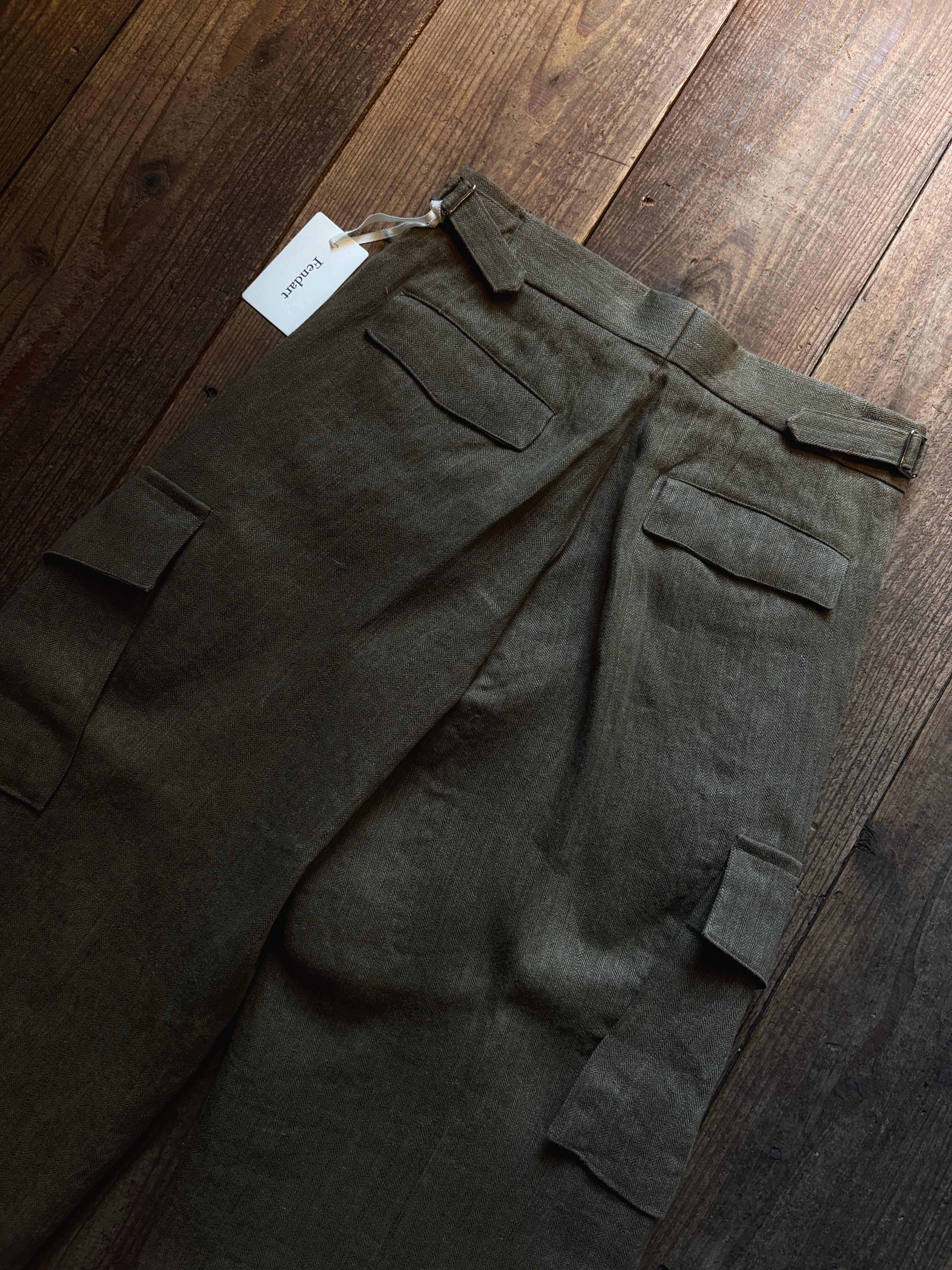 Fendart cross tuck cargo pants olive khaki