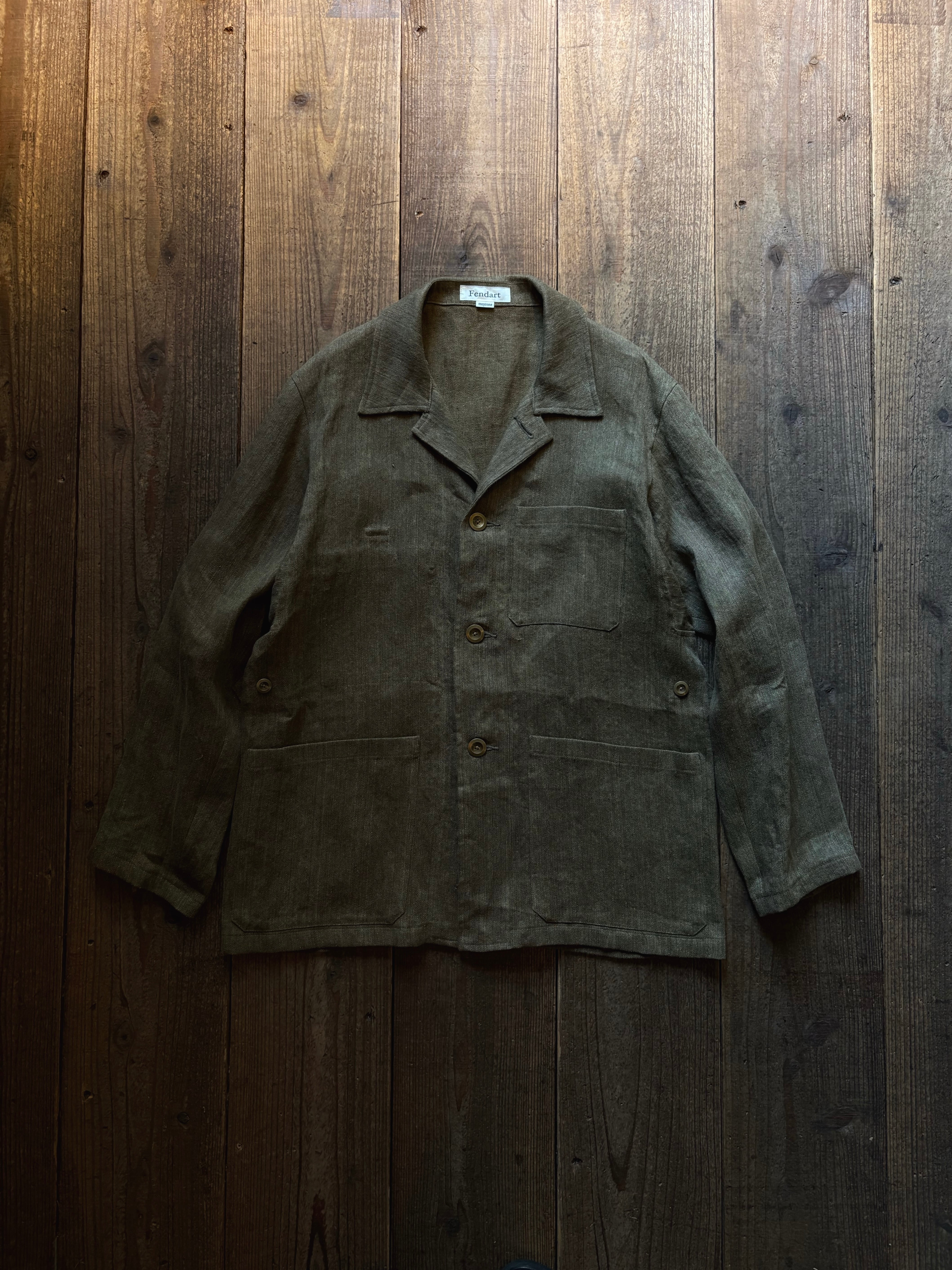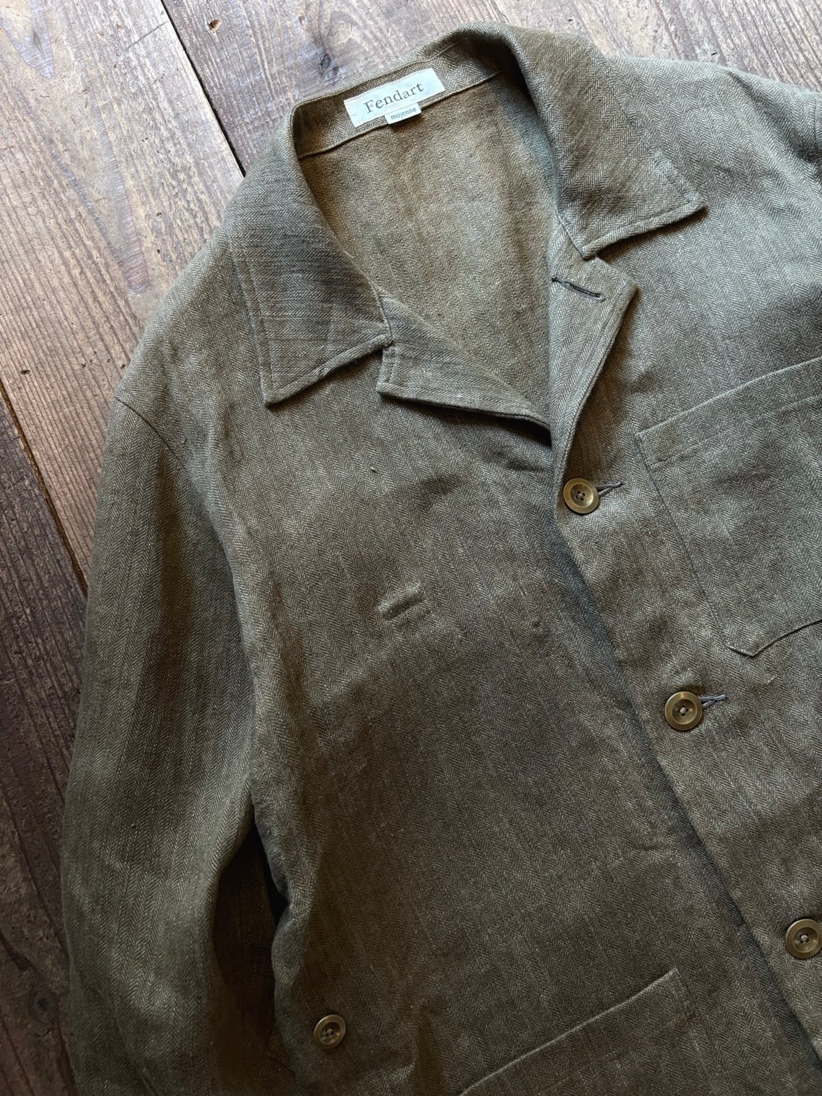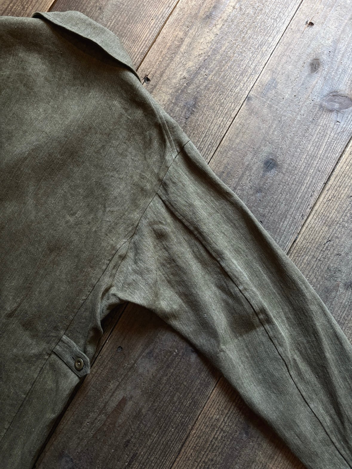 ヘヴィーリネンのヘリンボーンのオリーブカーキ。