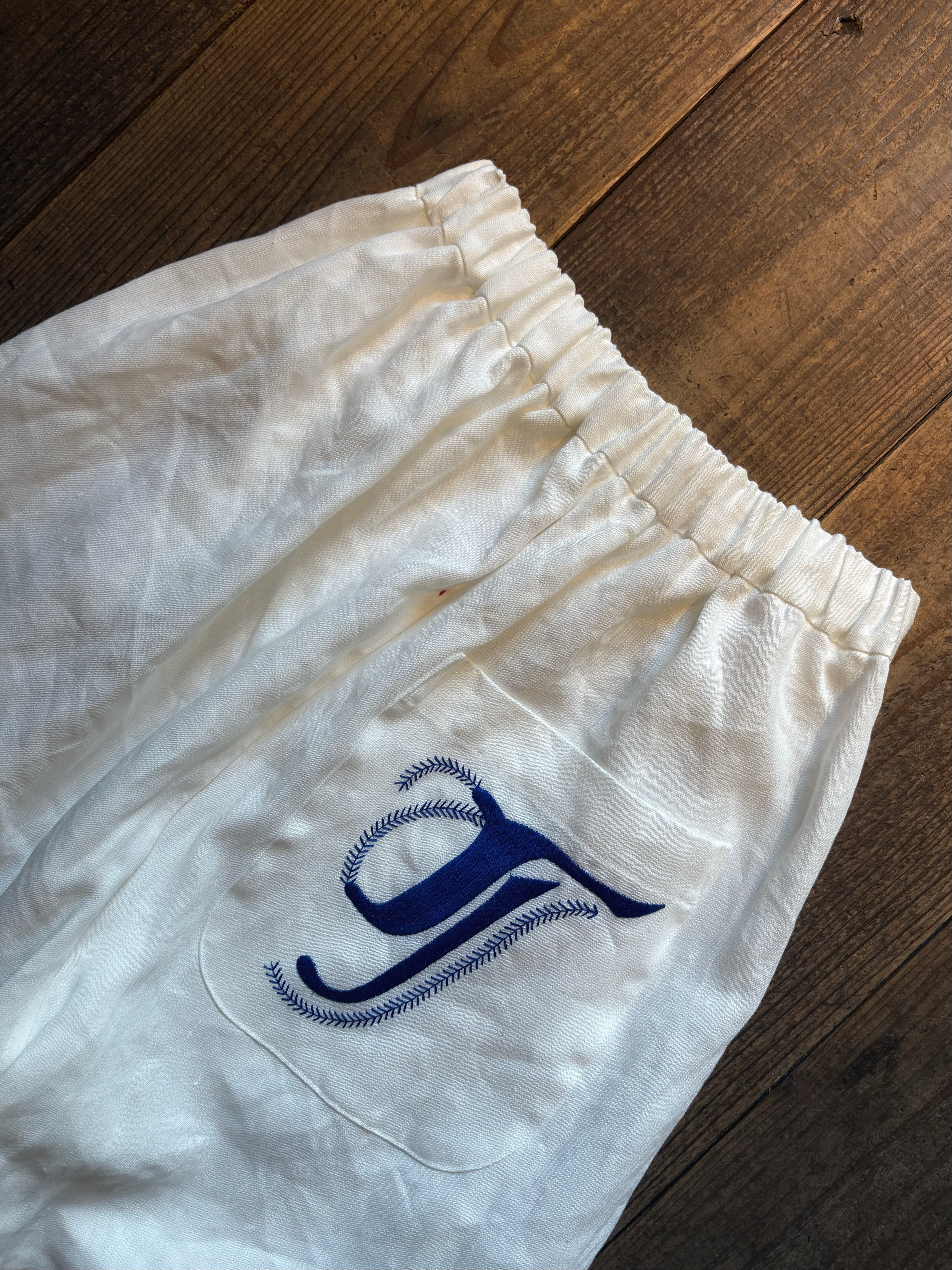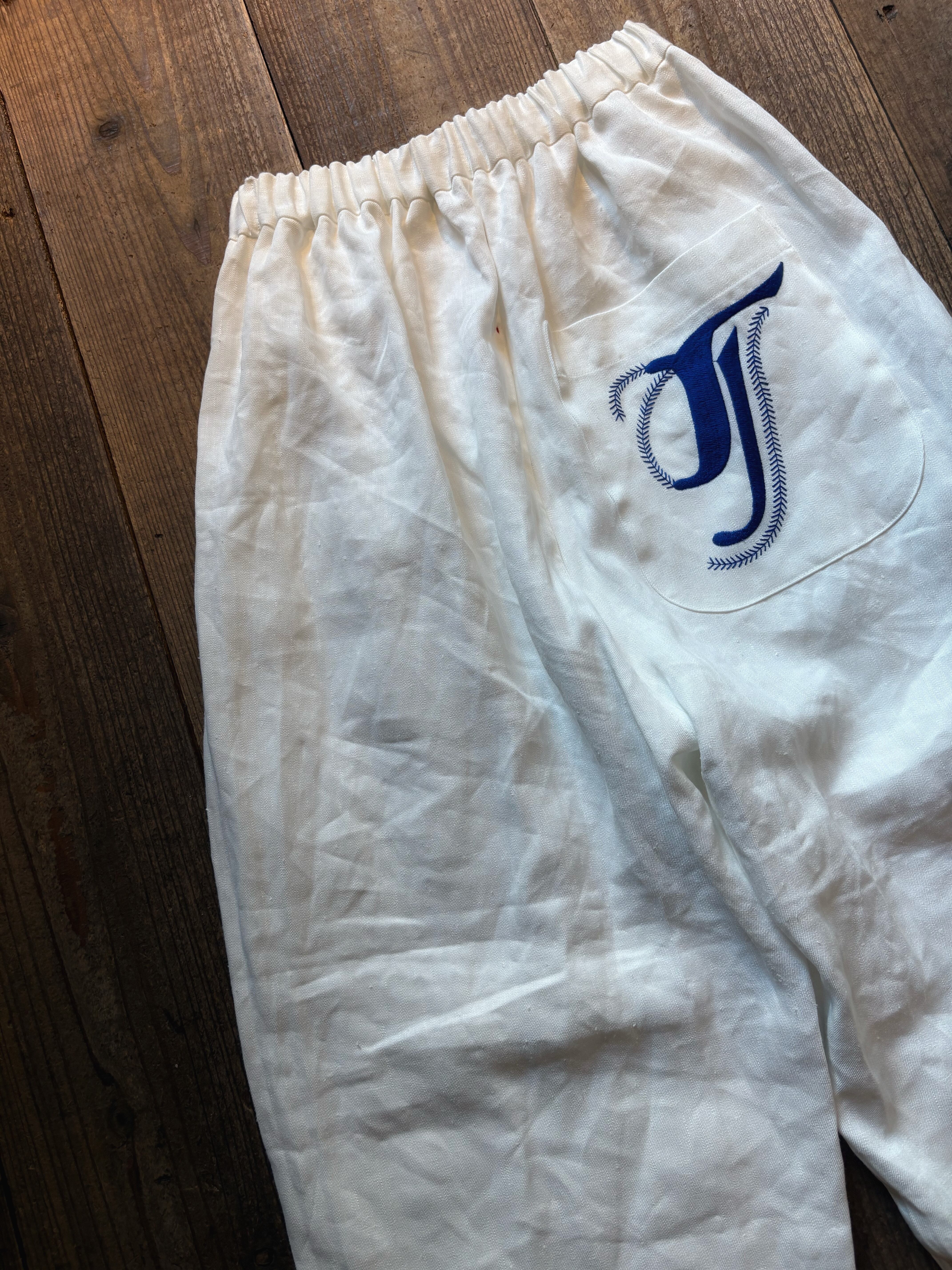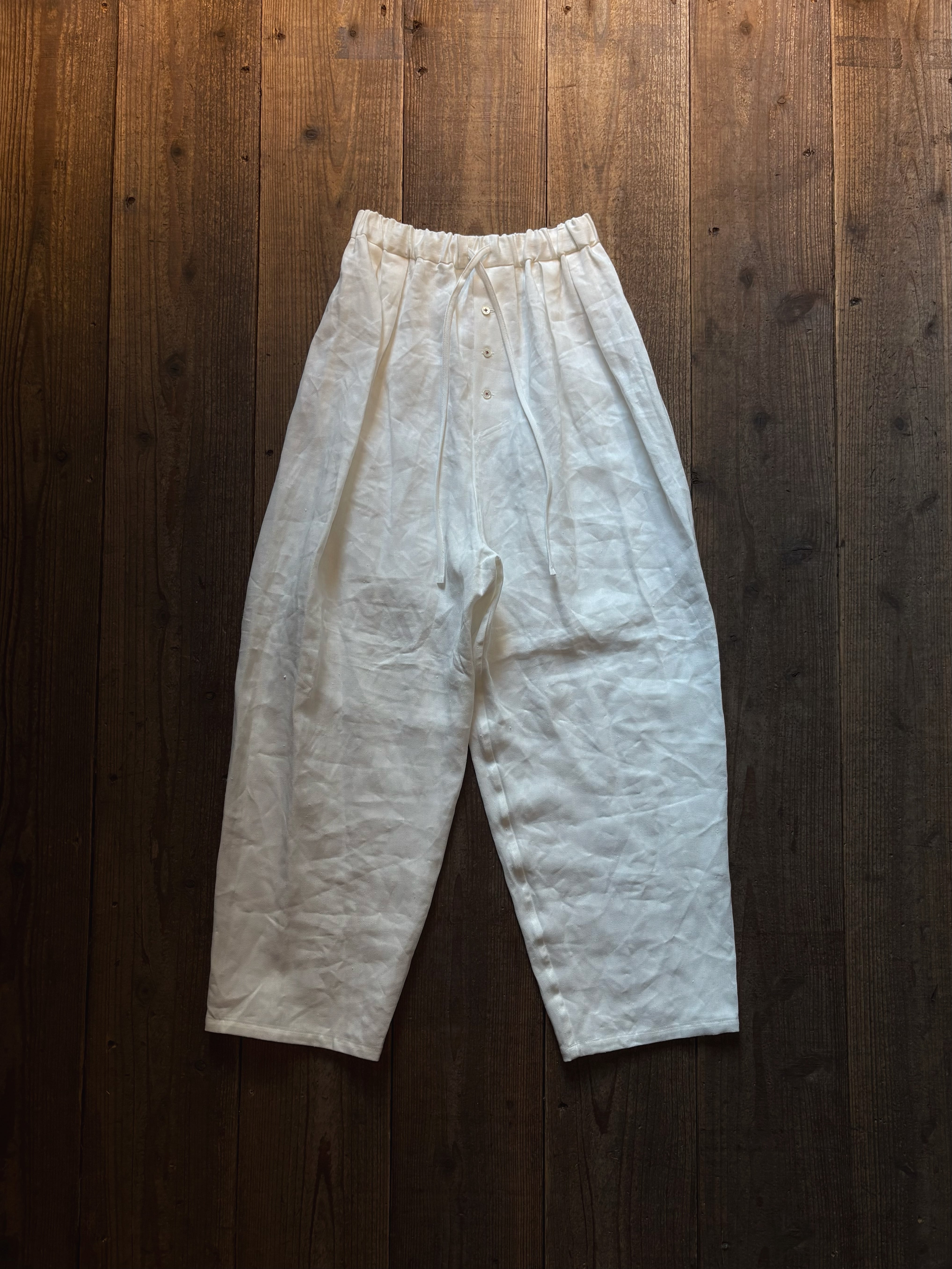 ルーズで簡易的なデニムの作業服。ヨーロッパリネンを岡山で染色、加工。