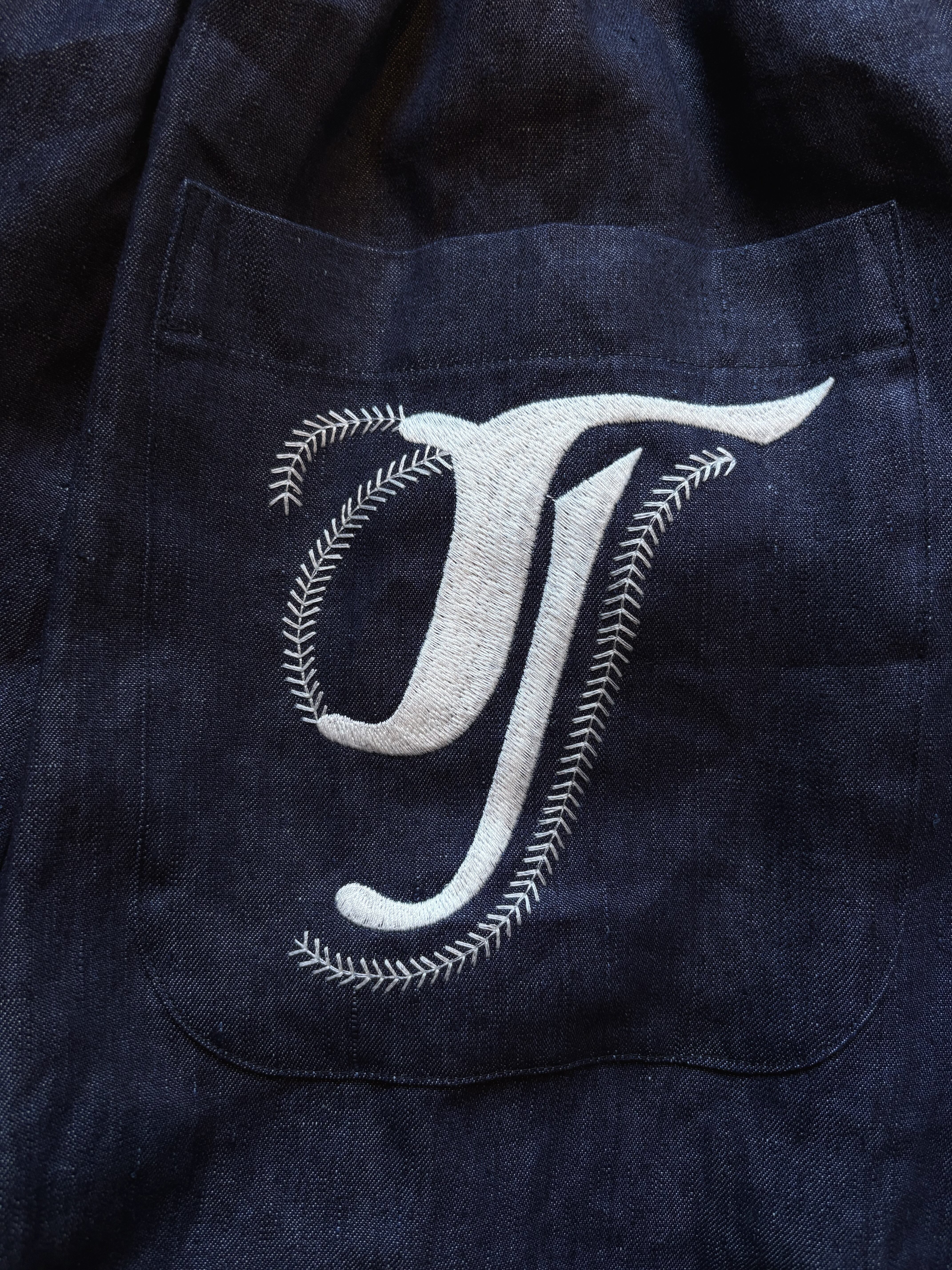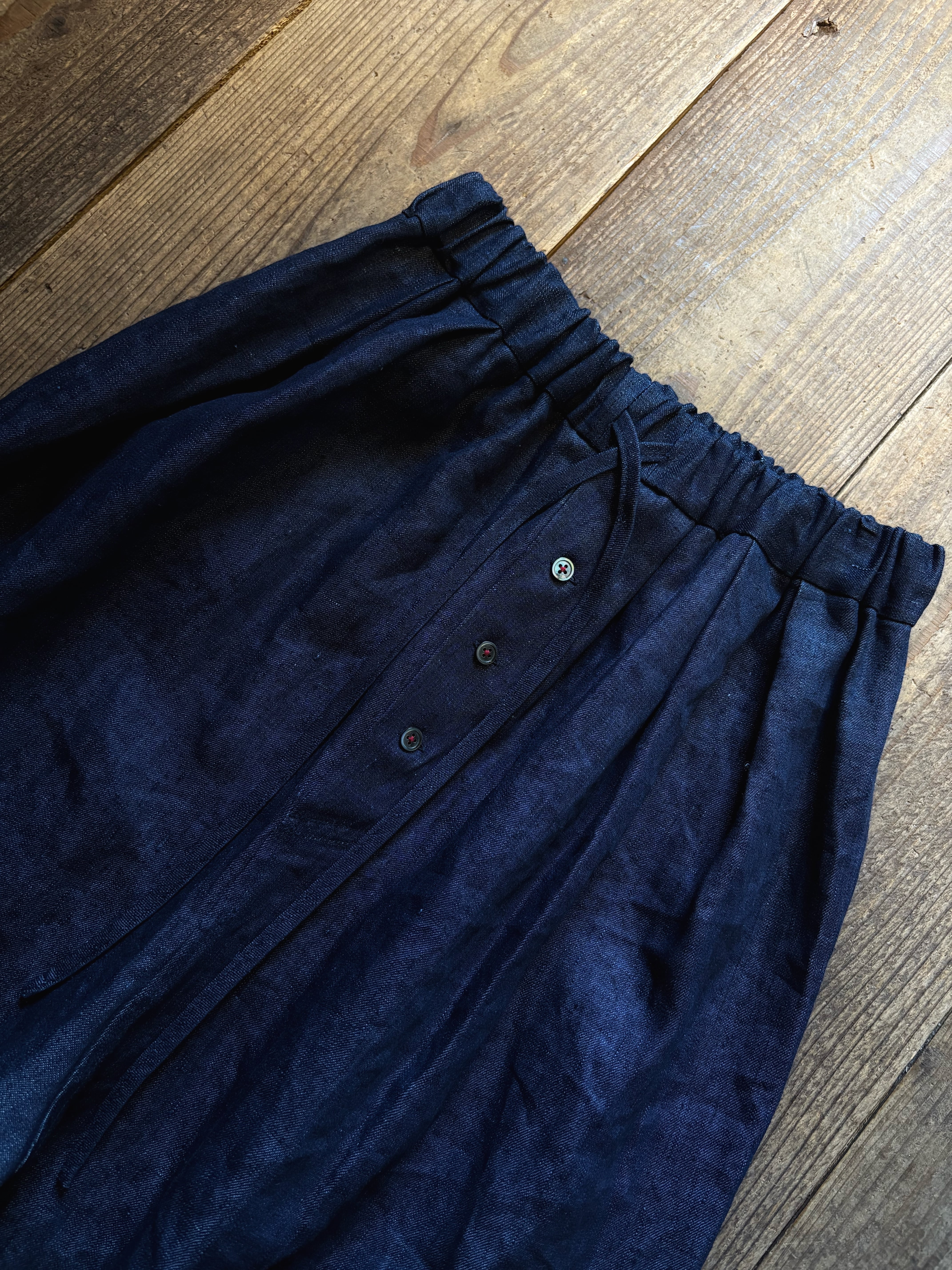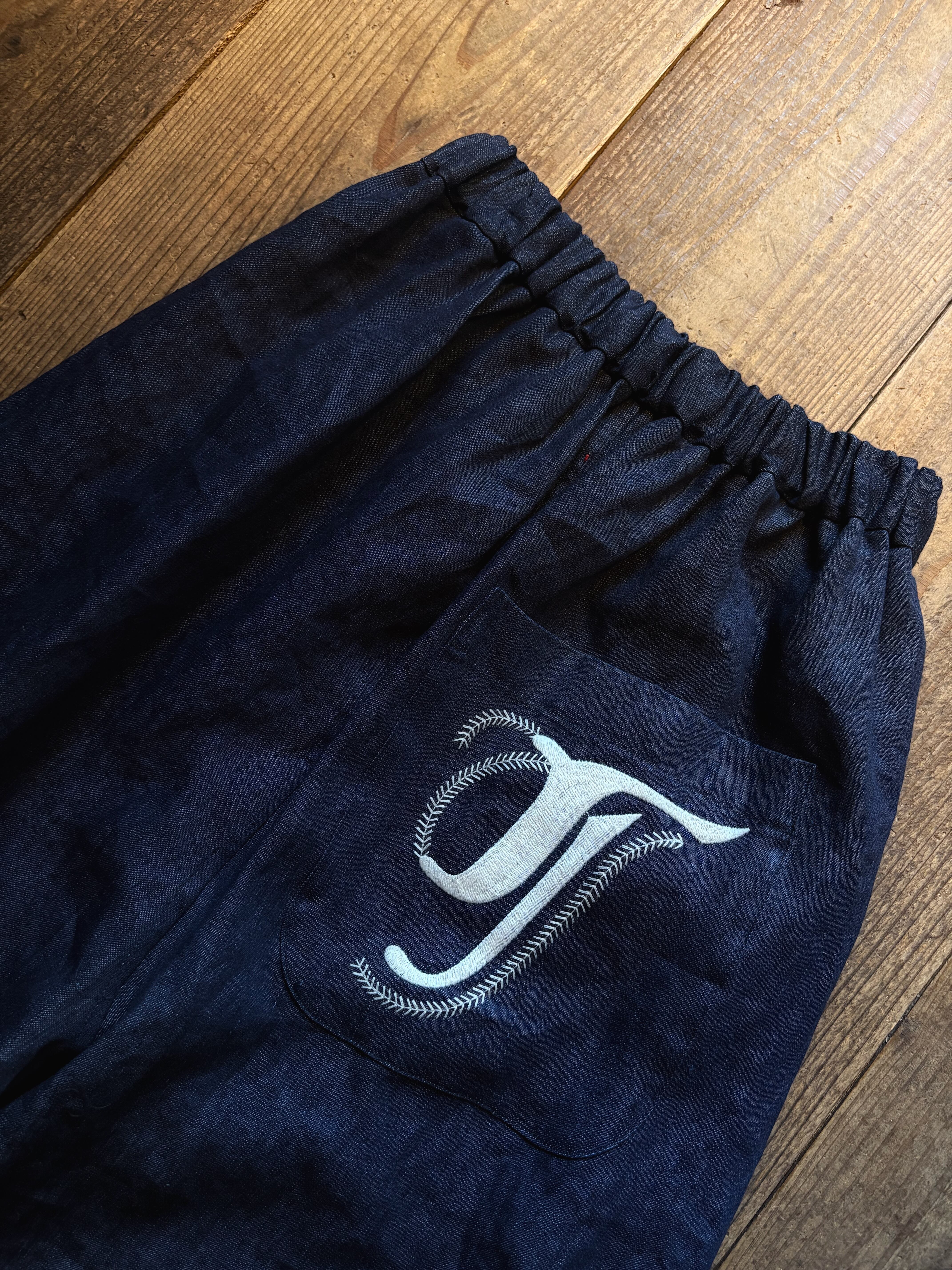 ルーズで簡易的なデニムの作業服。ヨーロッパリネンを岡山で染色、加工。