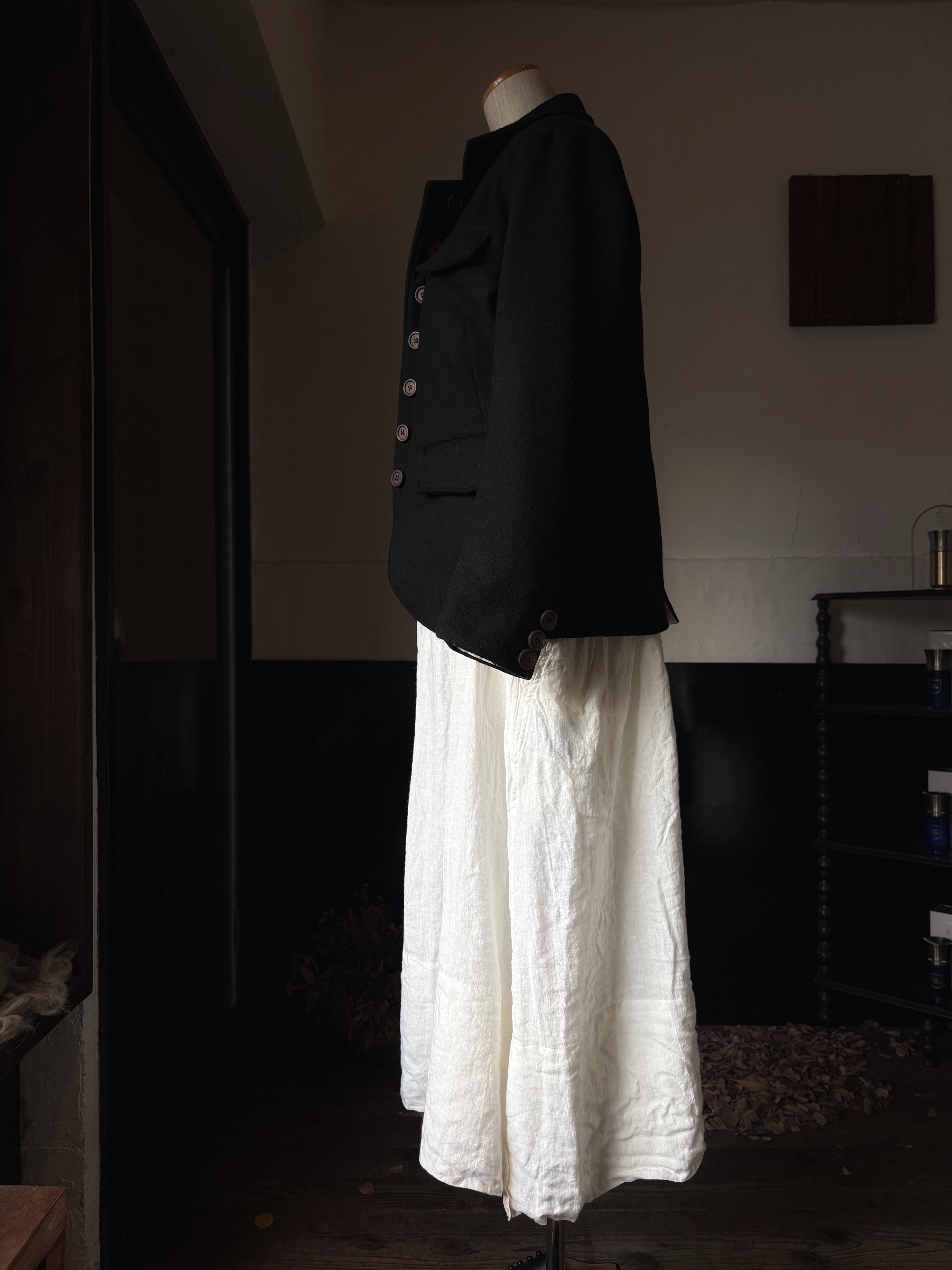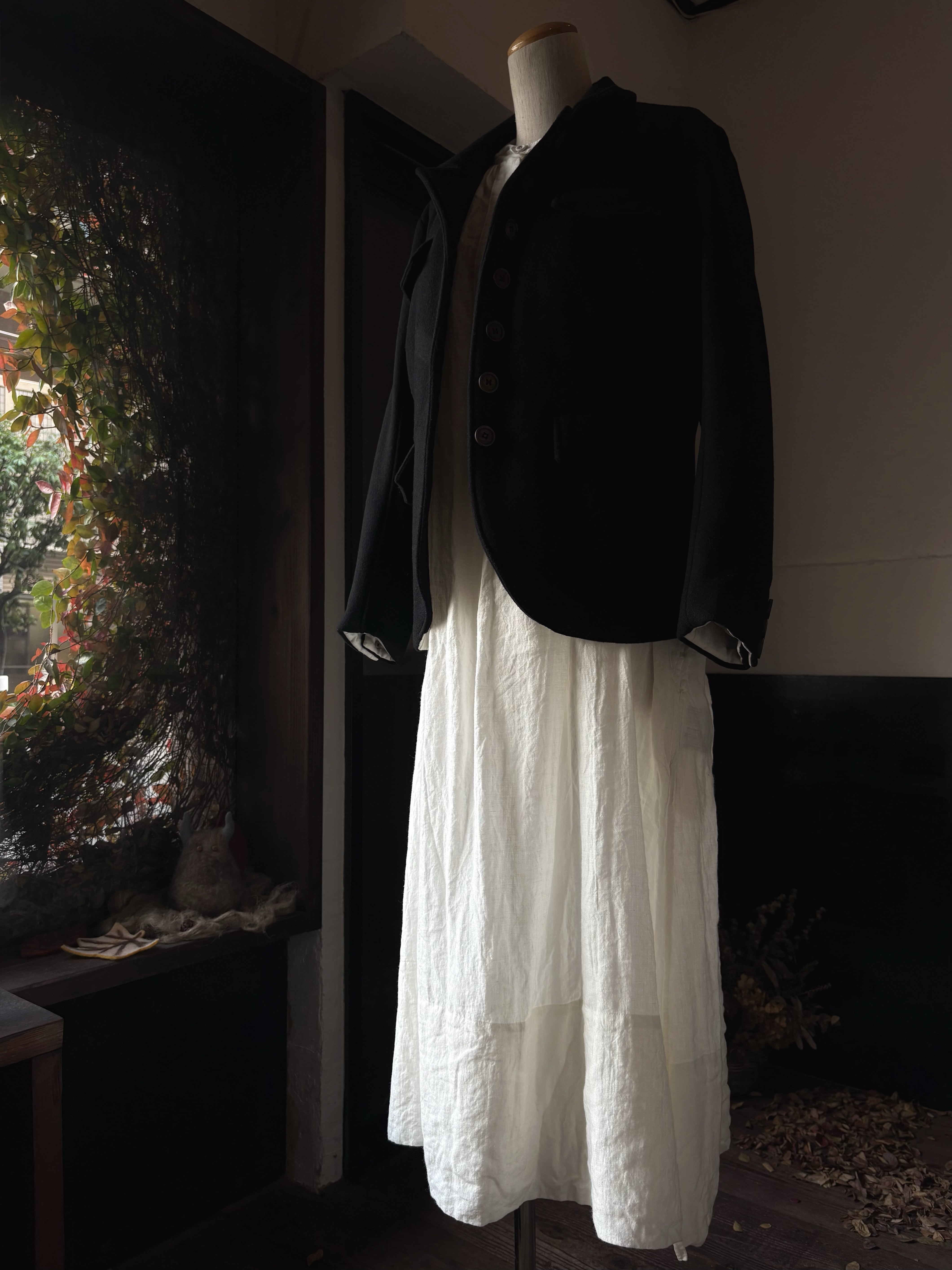それにより釦一つとっても、風合いが異なり、既製服では感じる事の出来ない手仕事を感じる事が出来る、まさにアートピースのような仕上がりです。