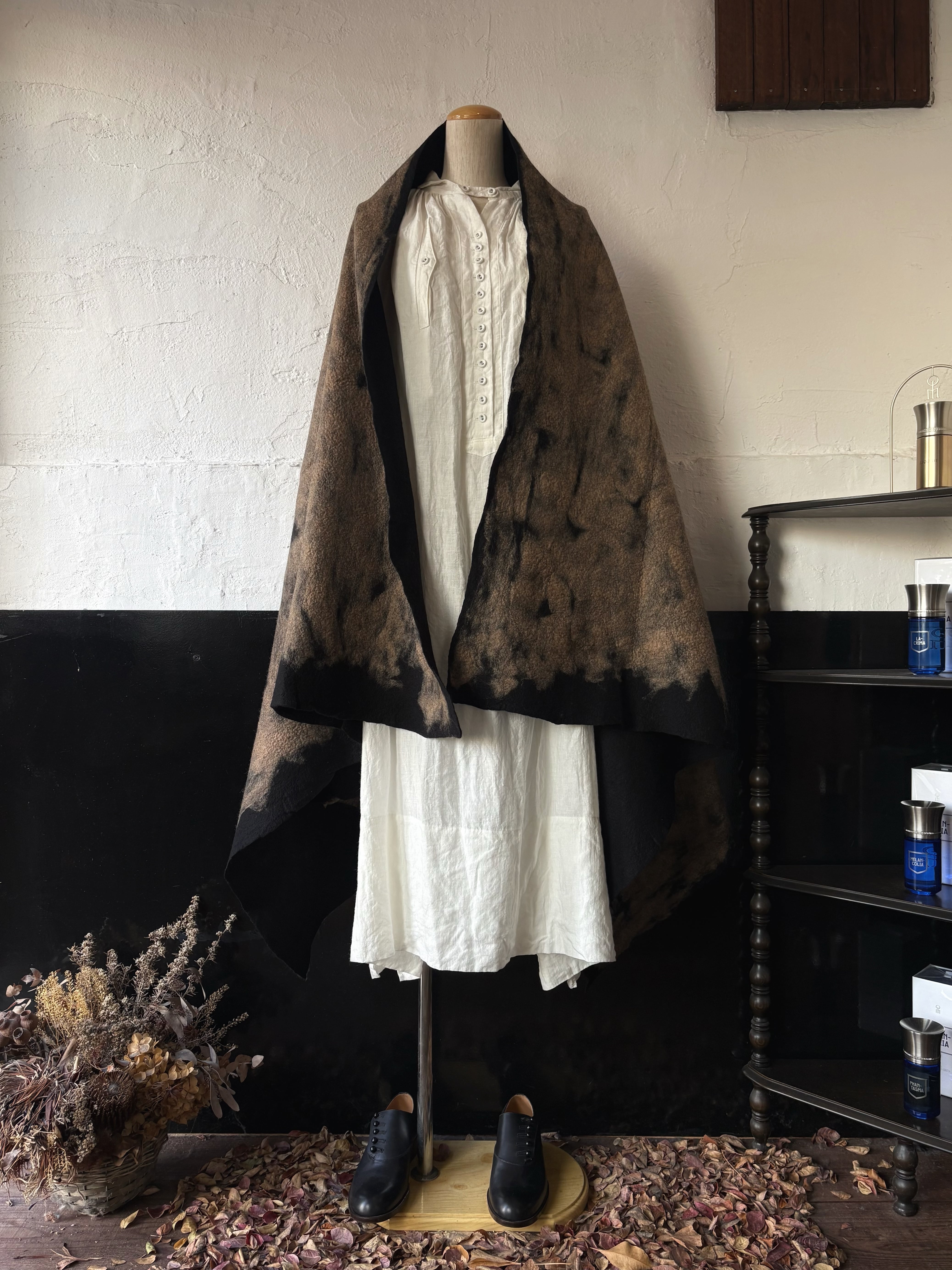コレクションは、古代から用いられてきたフェルト(不織布)の技法を再解釈し、織る・編む前の原糸を独自の技術で結合させることで、ニットにはないソフトで温かい独特の風合いを持つ製品を開発しています。