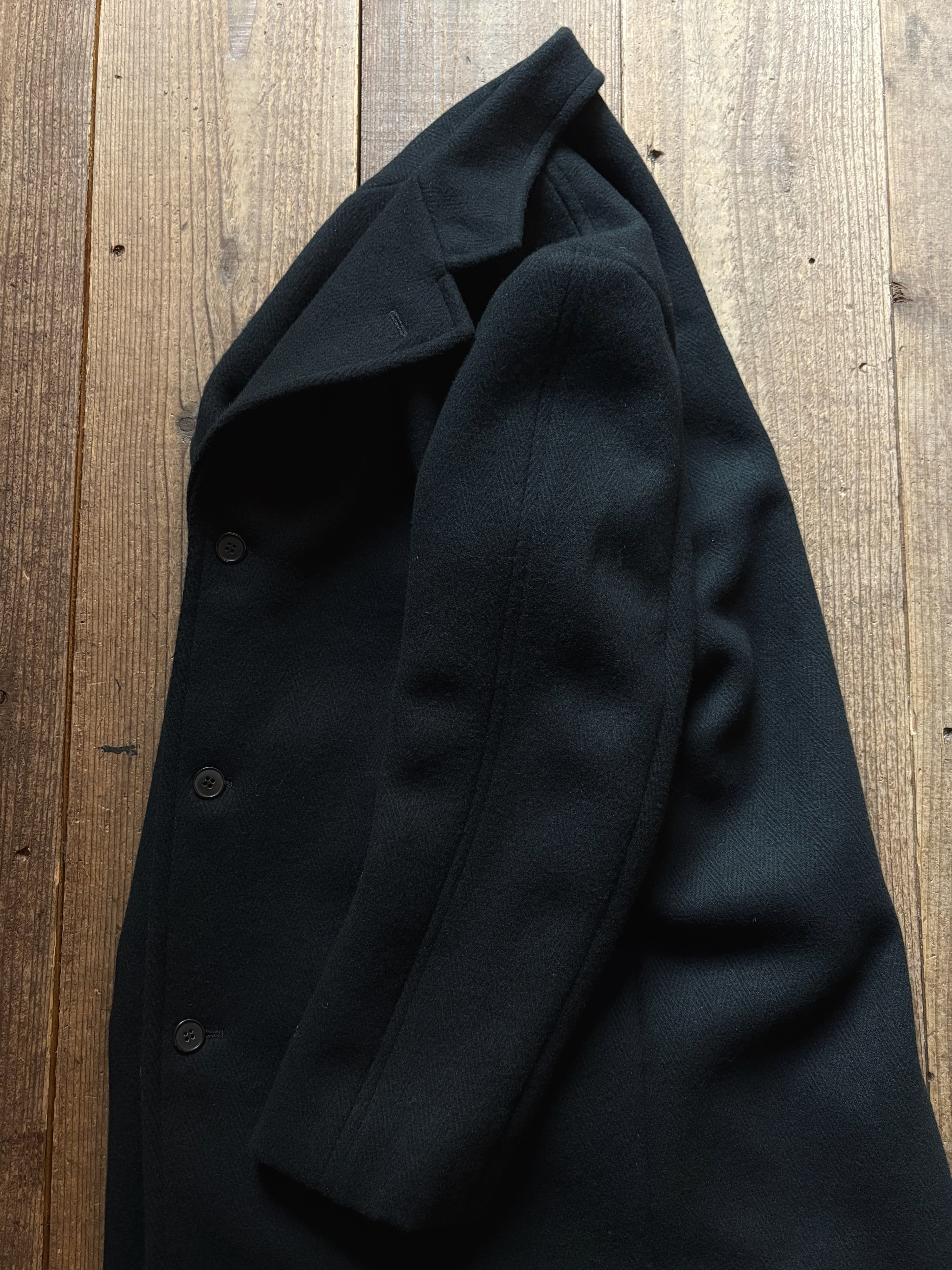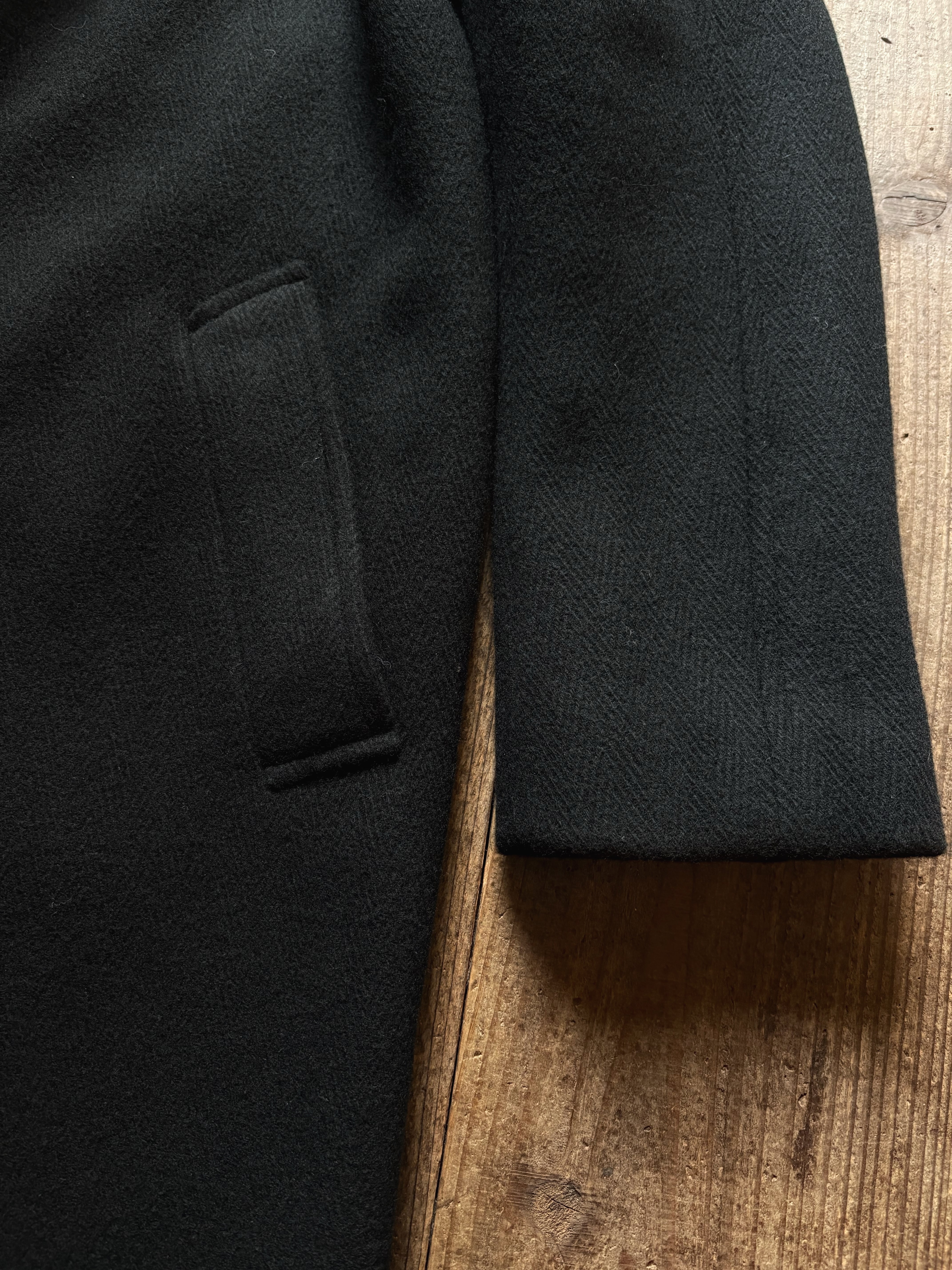 厚手のヘリンボーン柄のメルトン生地を使用、釦も骨董品店で見つけたアンティークの釦を使用している特別な一着になります。