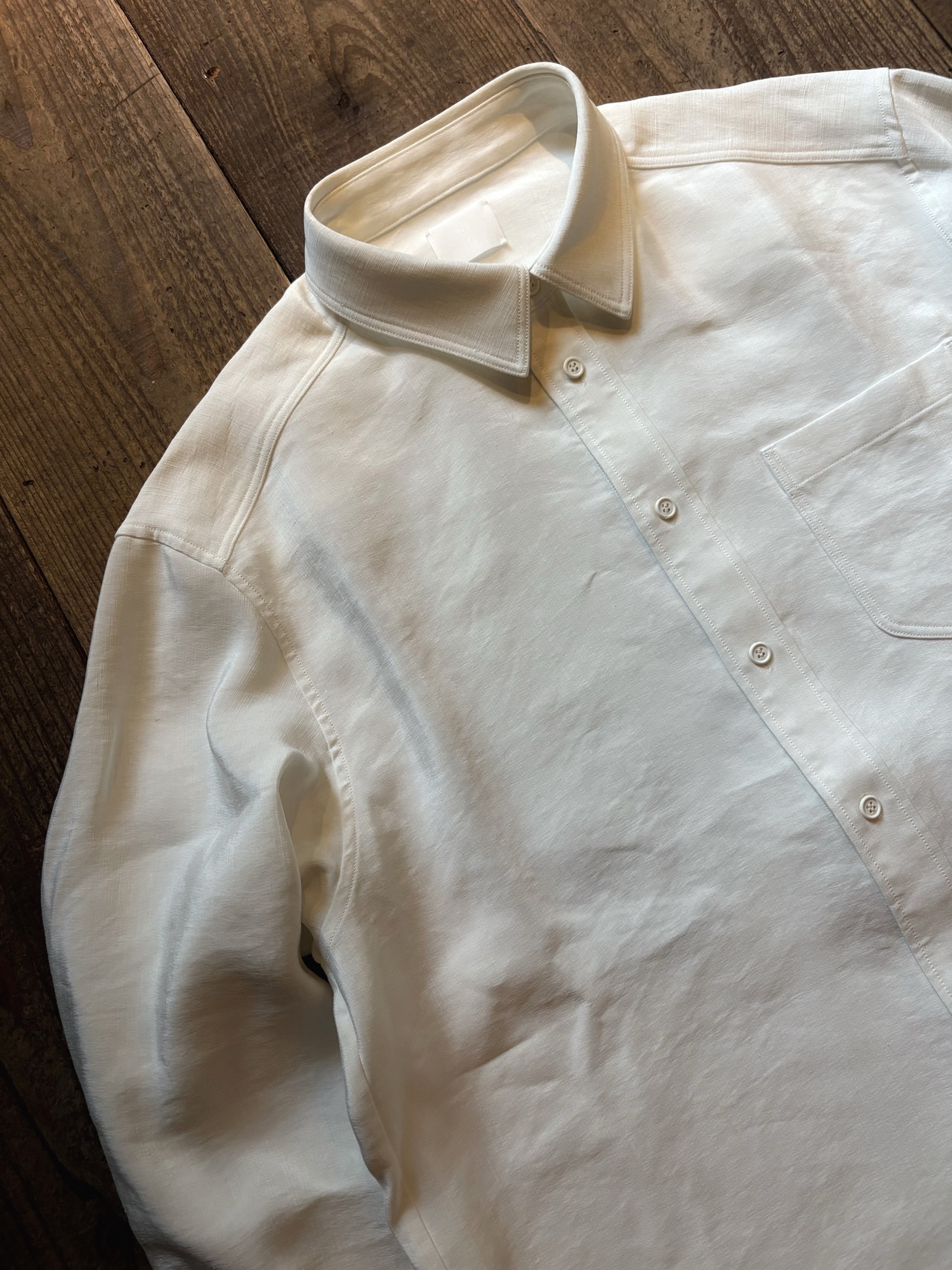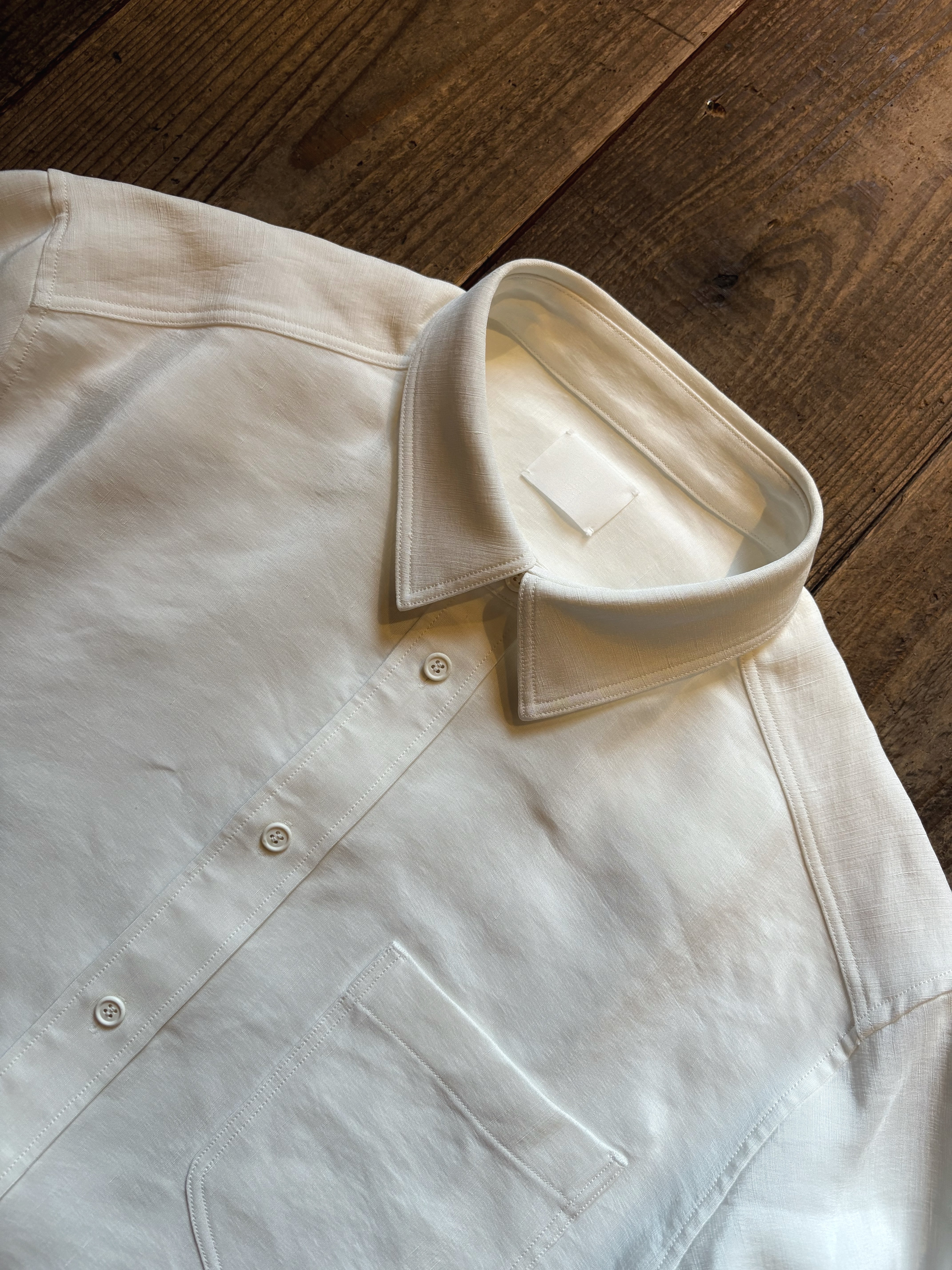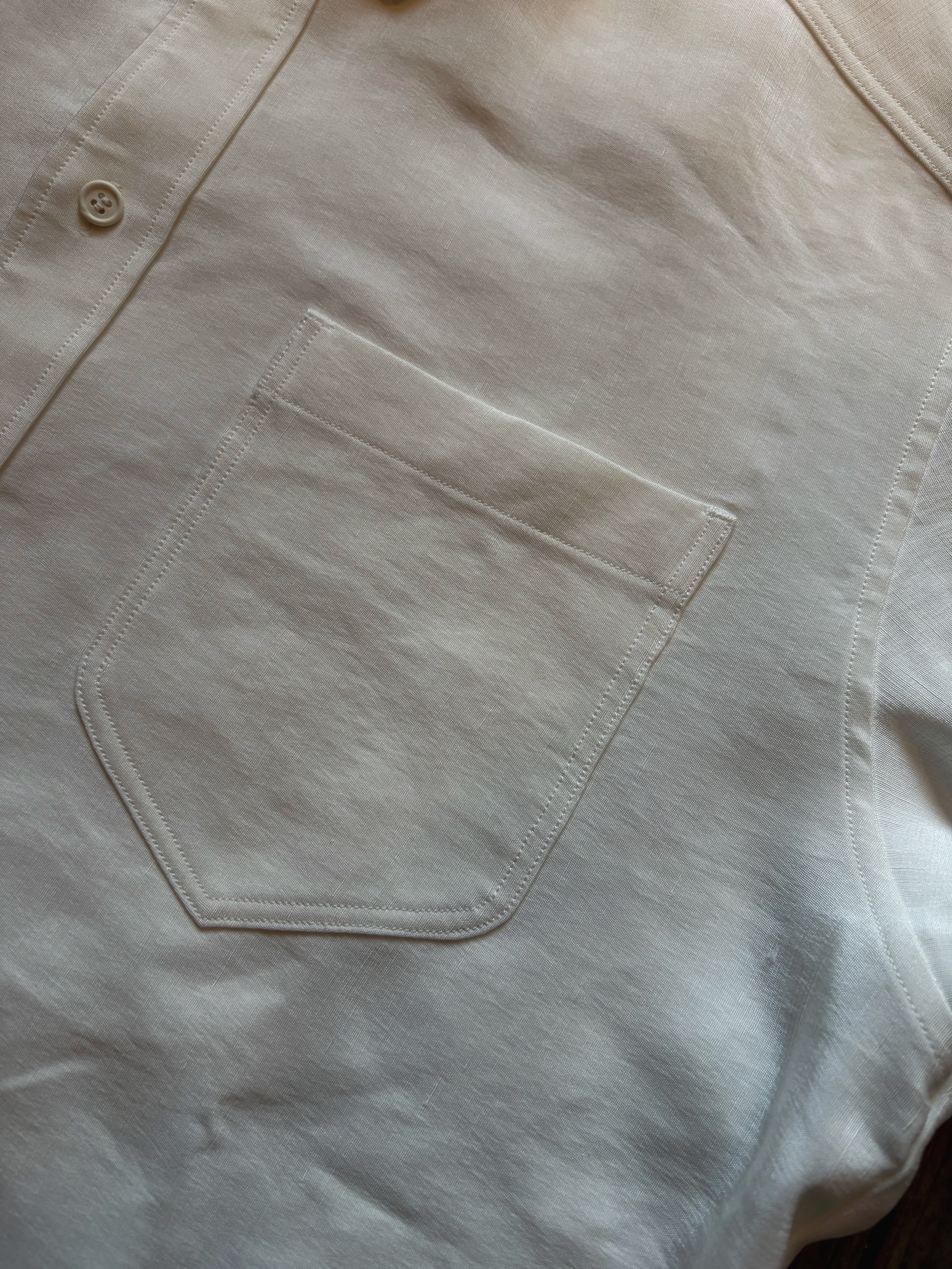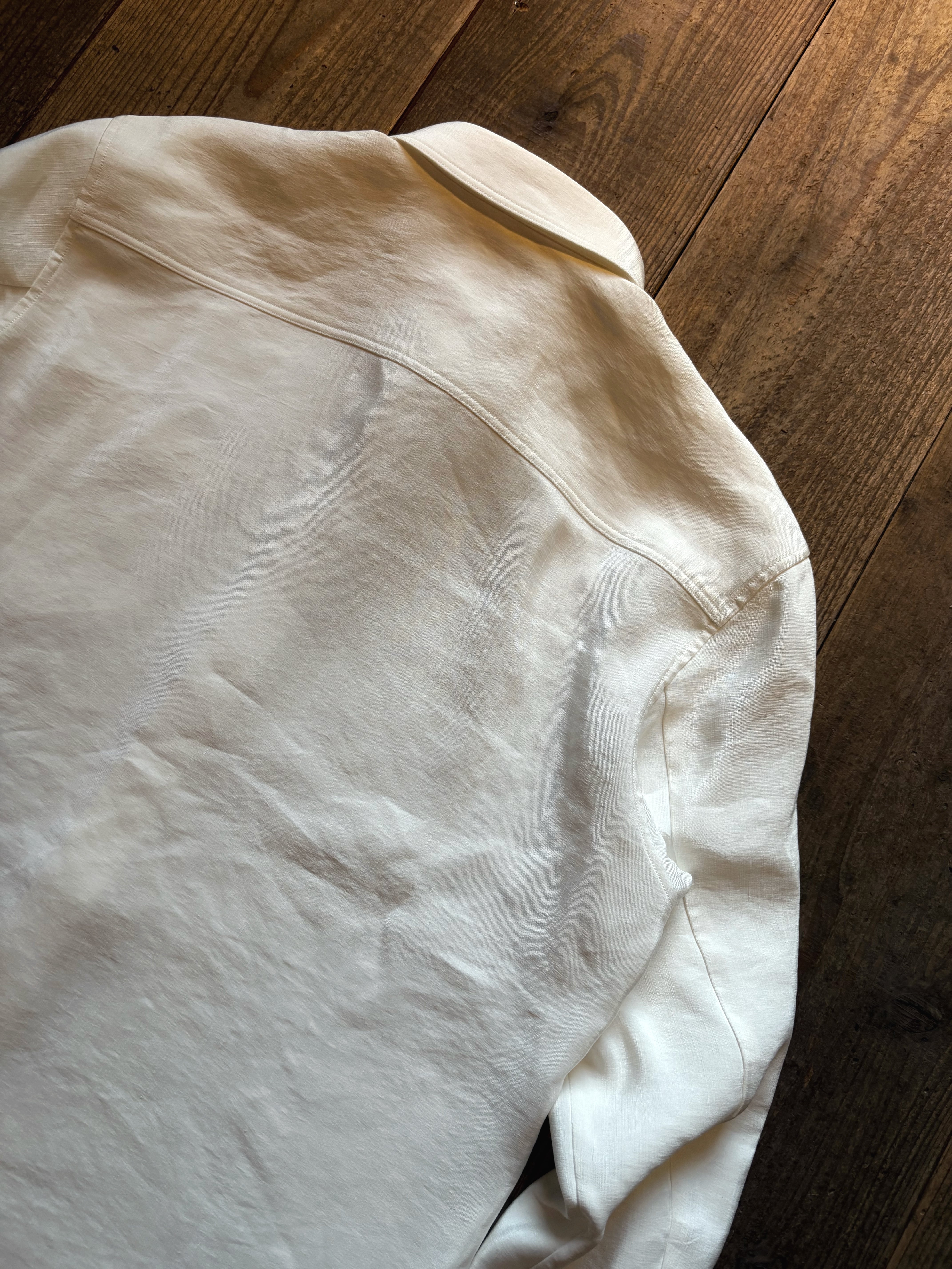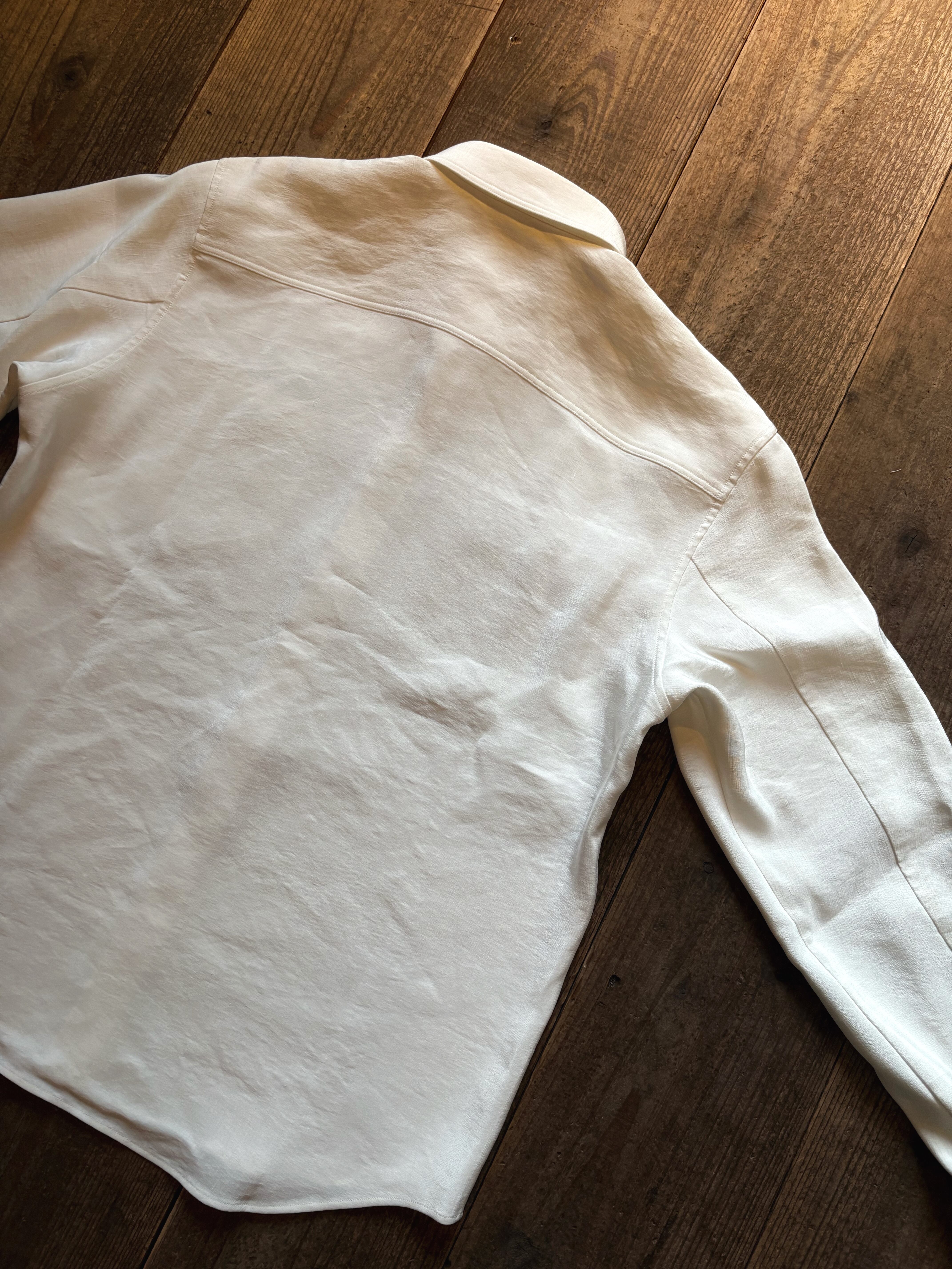山内 ビンテージシルクリネン・ダブルステッチシャツ off white