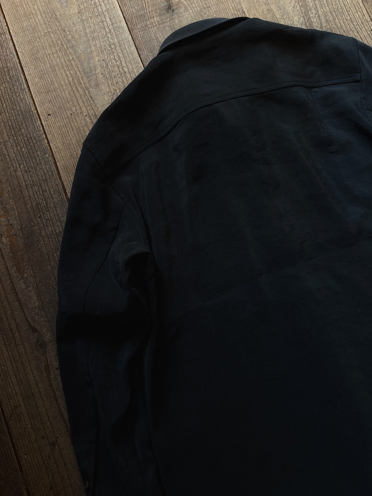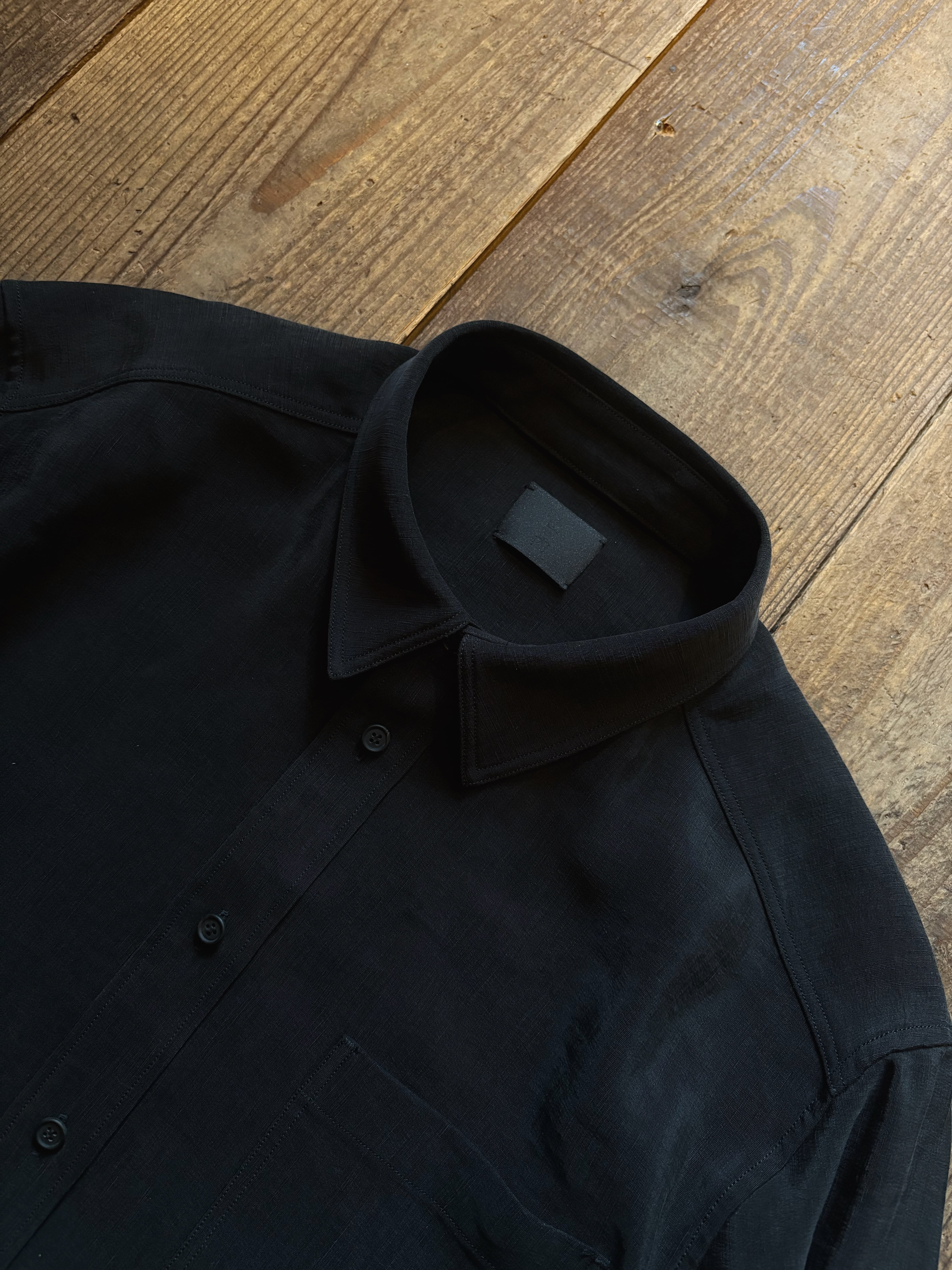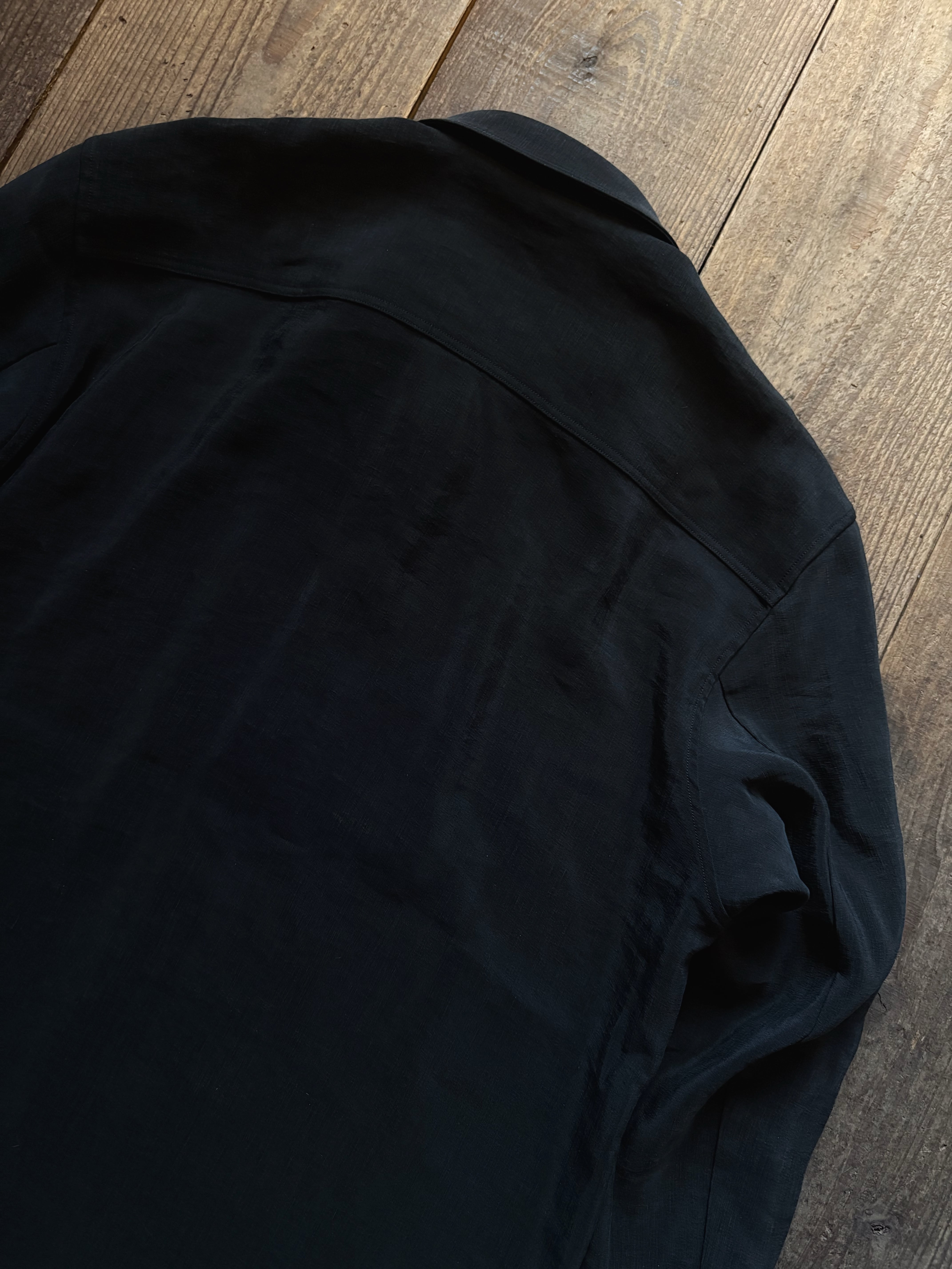 山内 ビンテージシルクリネン・ダブルステッチシャツ sumi black