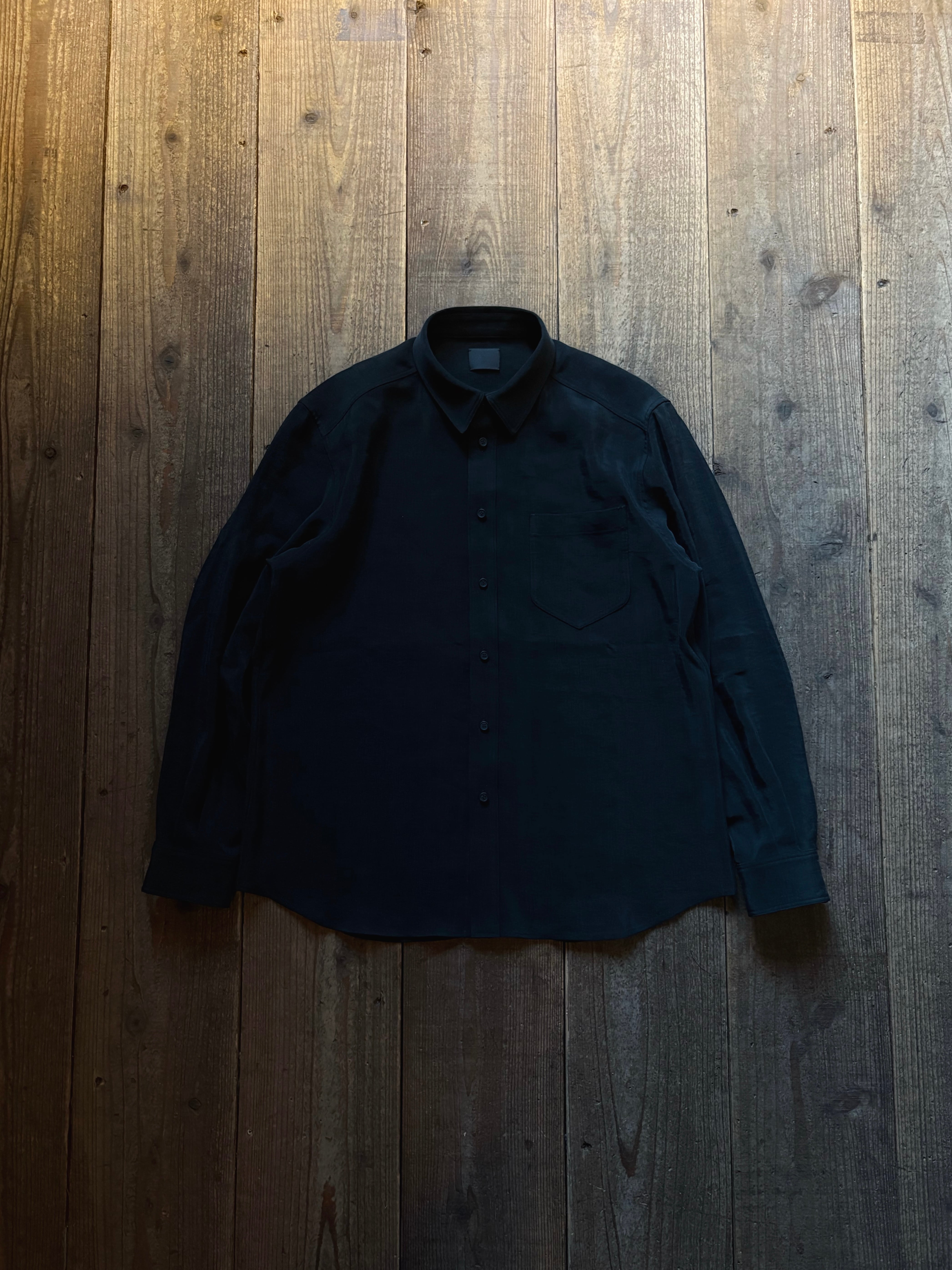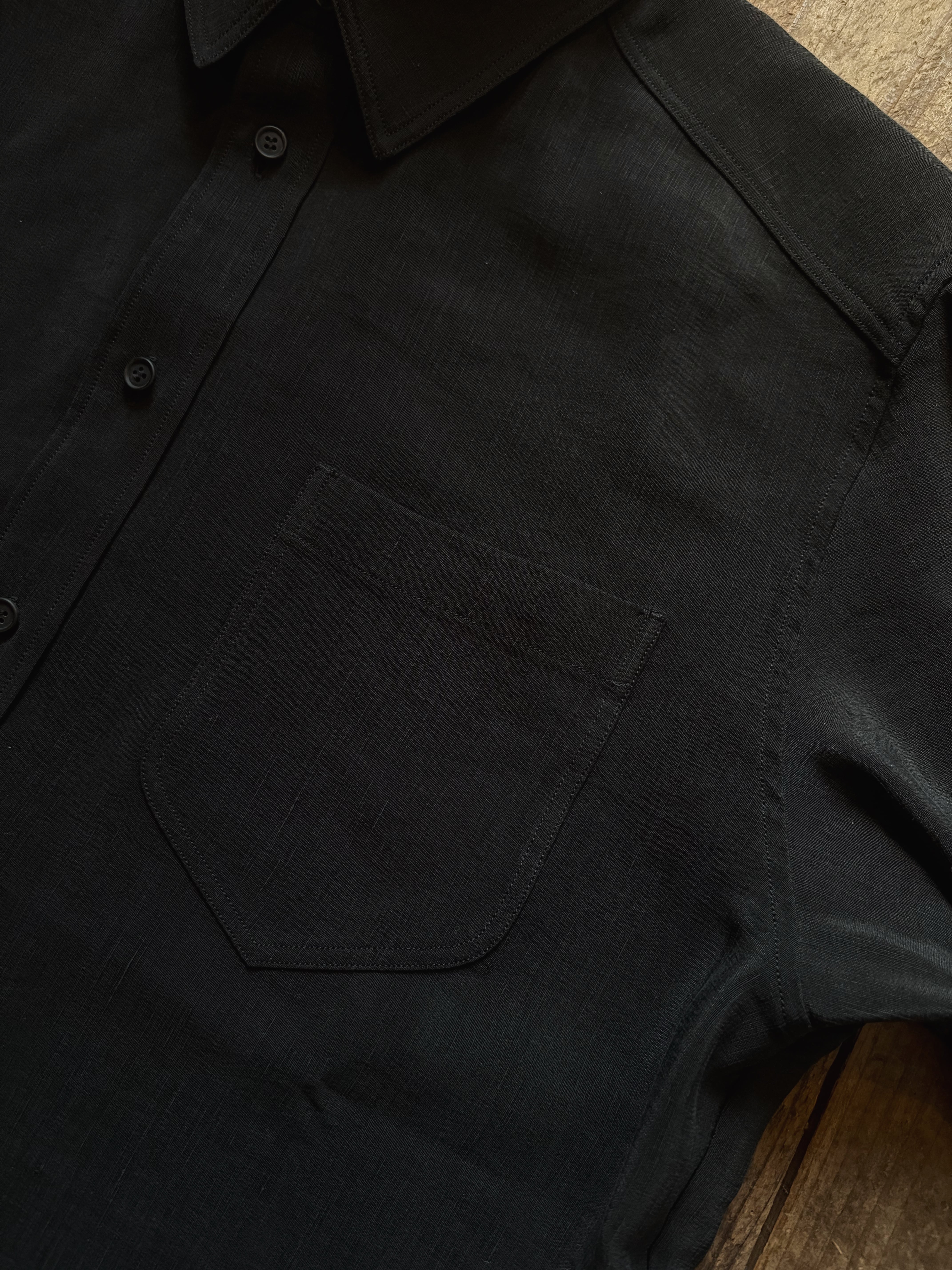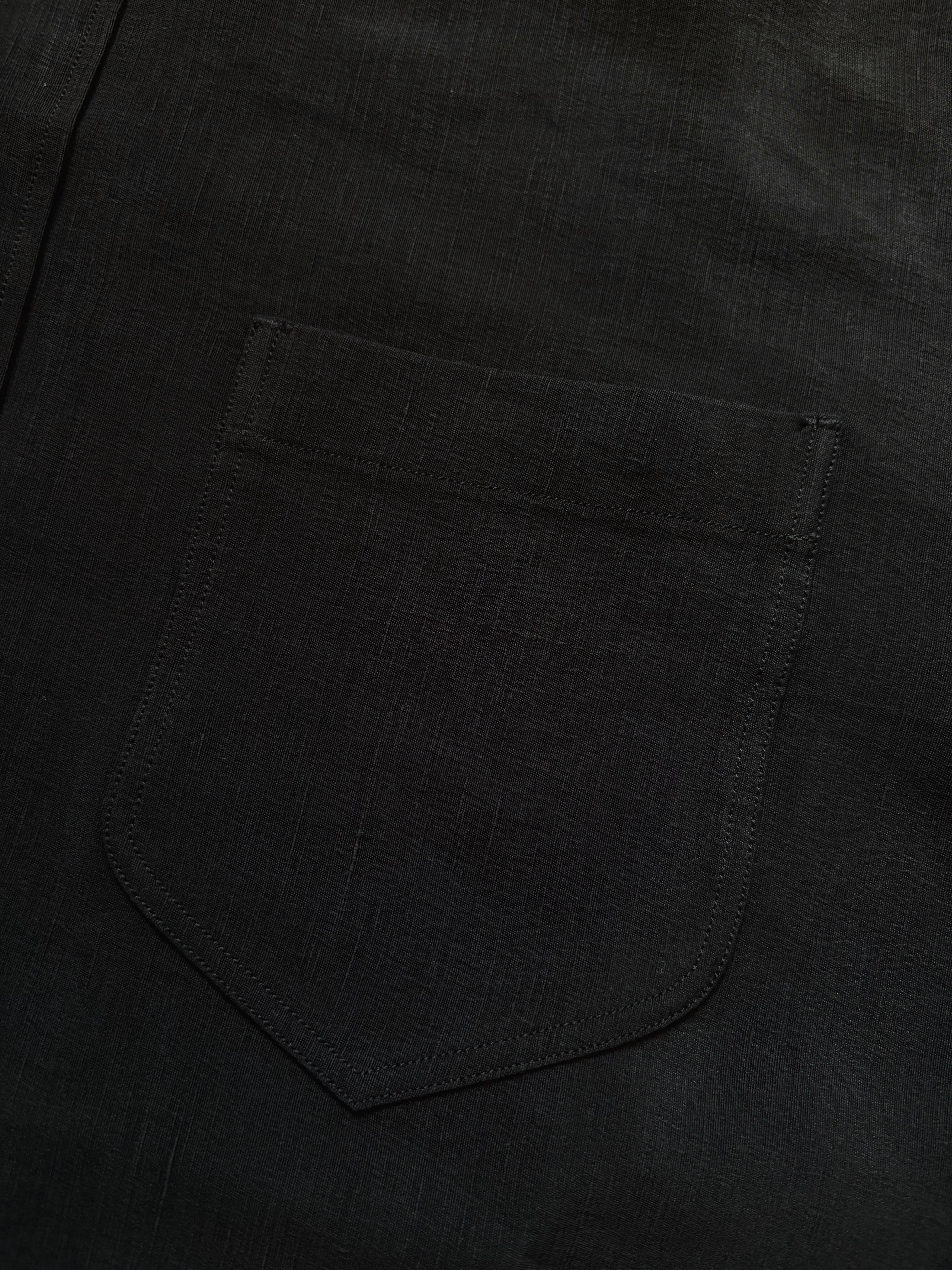 山内 ビンテージシルクリネン・ダブルステッチシャツ sumi black