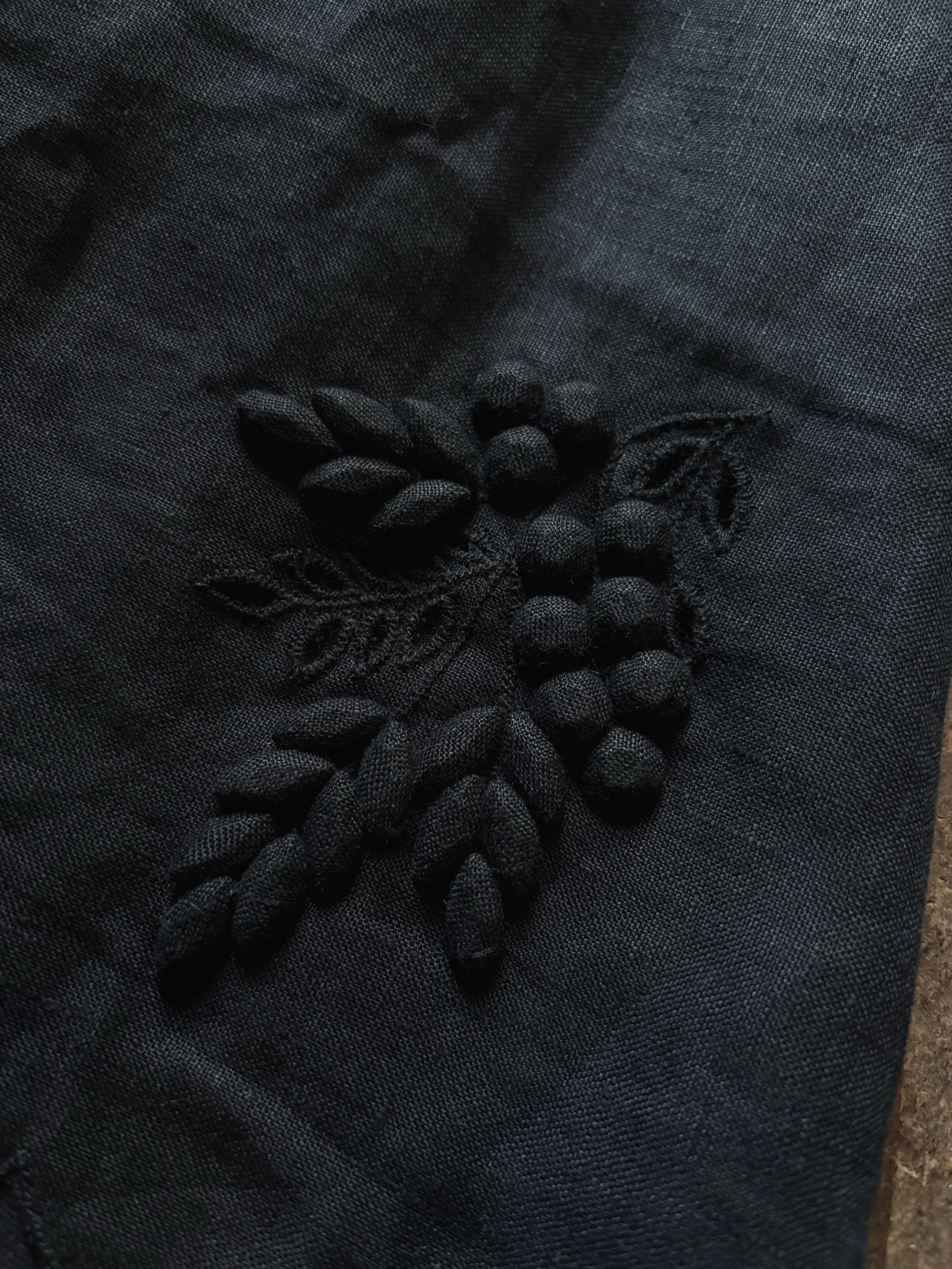 インドのの工房でビジューを一粒一粒生地で包み施していくTOWAVASE定番の技法。