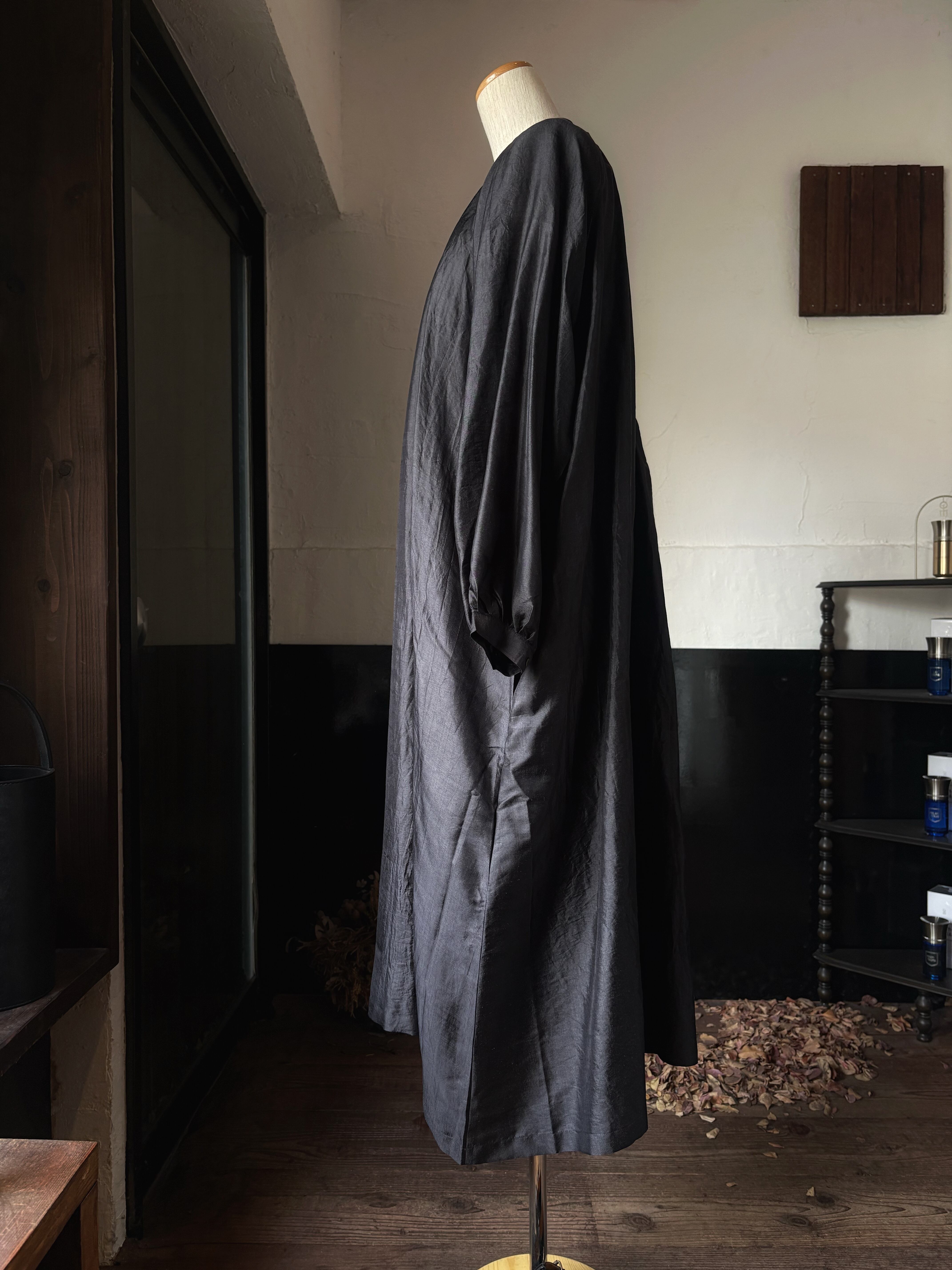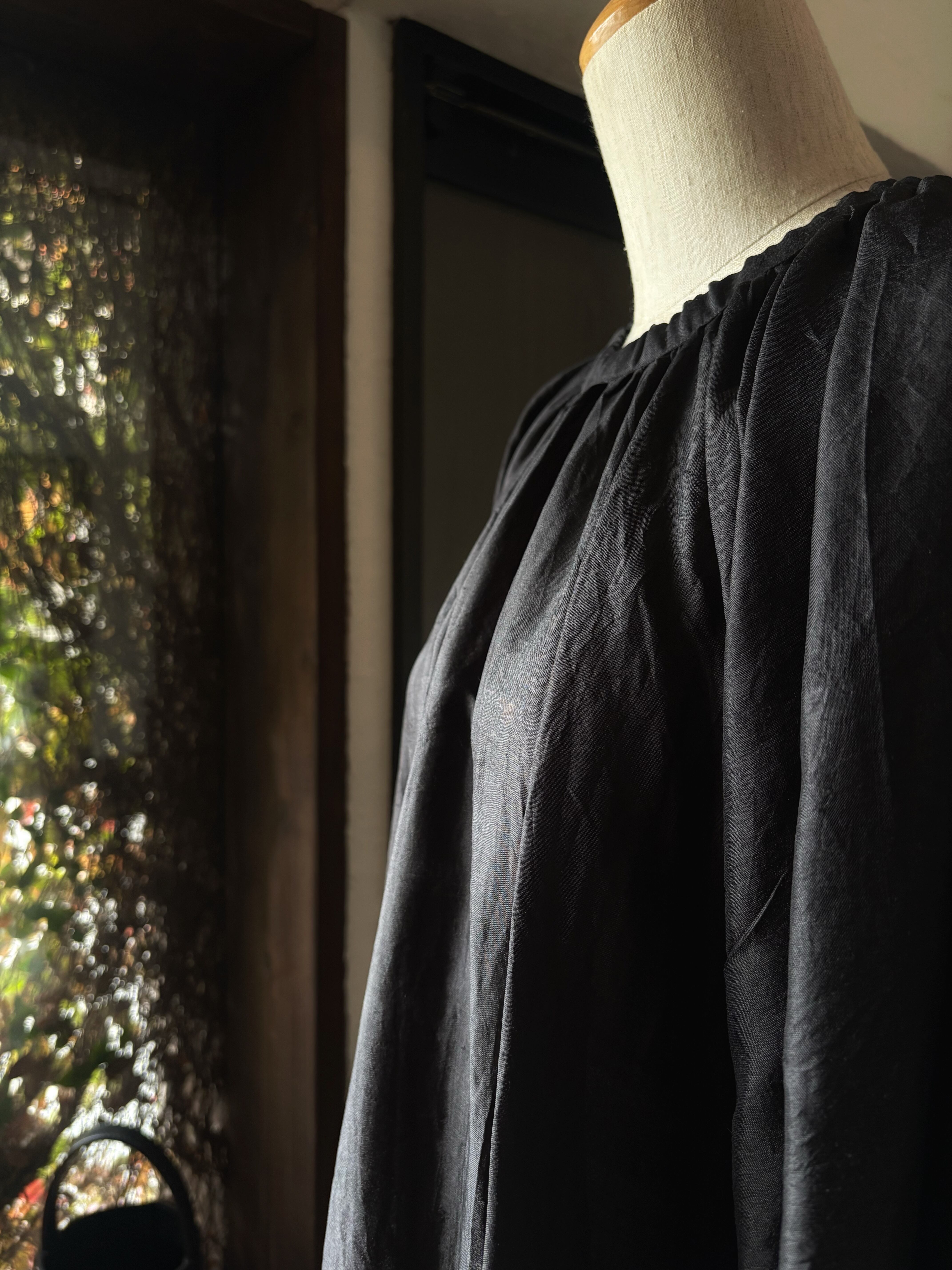 手紡ぎ手織りのカディシルクを使用した新型のドレスです。