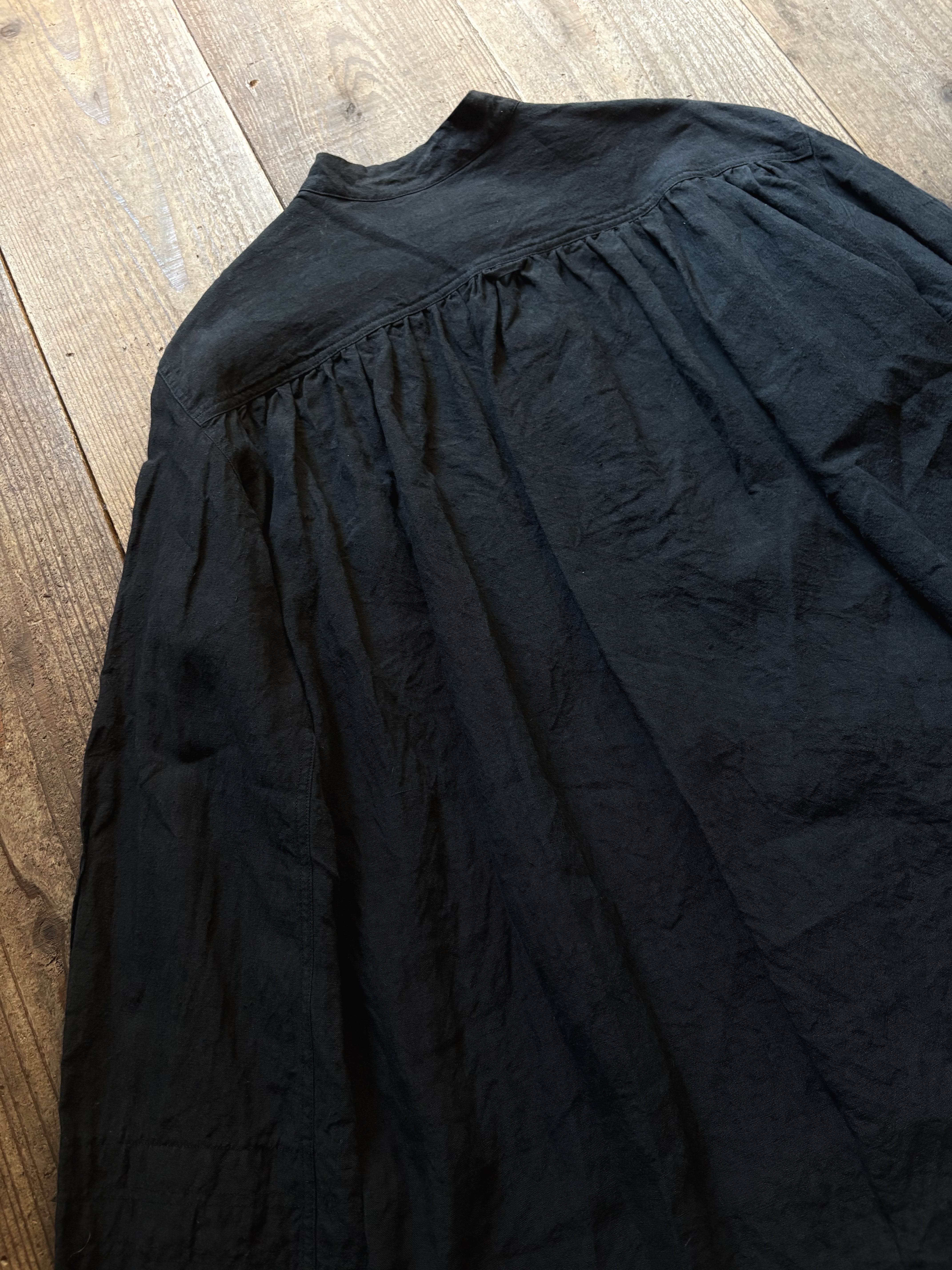 筆をさすホルダーや画材を入れる大きめのポケット、動きやすいようにたっぷりと入ったギャザー等、まさに画家の為のシャツといえるでしょう。
