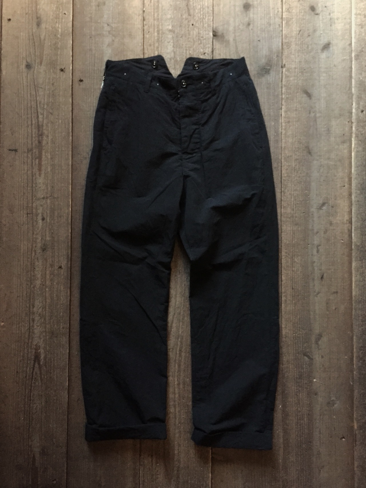 ジャケットの袖付けのようにいせこみで作り出したヒップは、オーバーサイズ気味ながらフィットの幅が広いです。