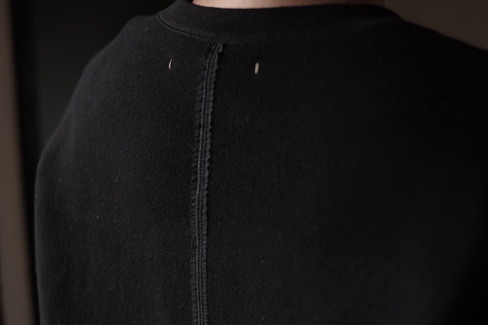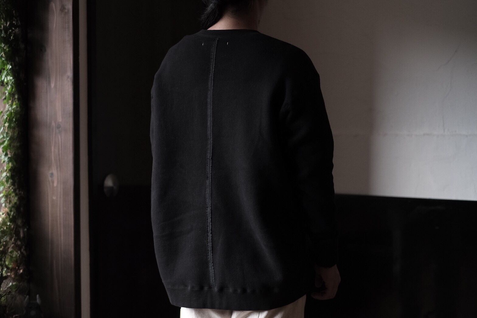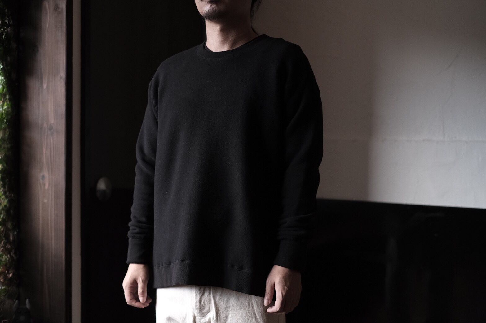 よくあるオーバーサイズのスウェットとは違い、ゆったりした身頃ですが、アームホールは細め、リラックス感のなかにほんの少し緊張感があります。