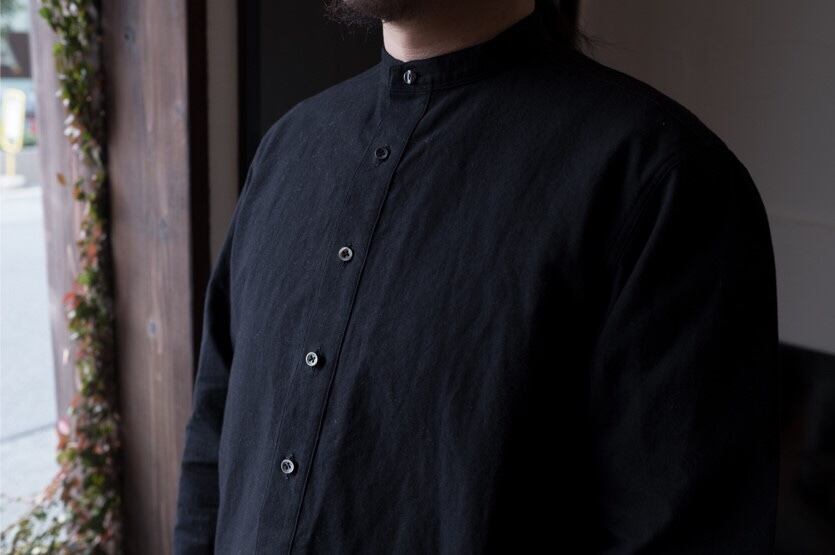 多めに入ったギャザーがアンティークシャツのような風合い、ボタンも全てオリジナルのものを使用しています。