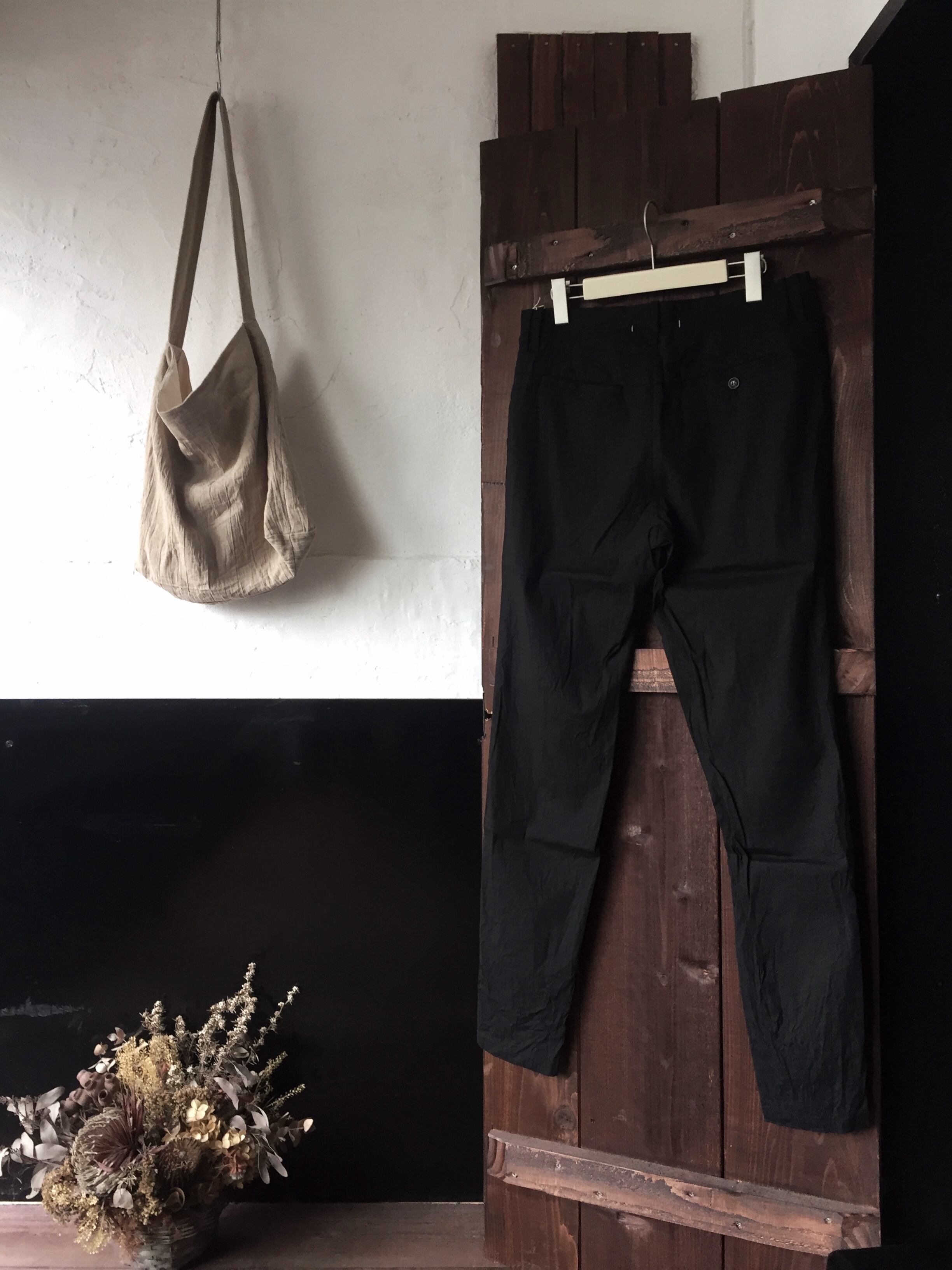 全体的には細めですが、ウエストやヒップ周りは比較的ゆとりを作っておりますので、ストレッチ素材と相まって、大変履きやすいものになっています。