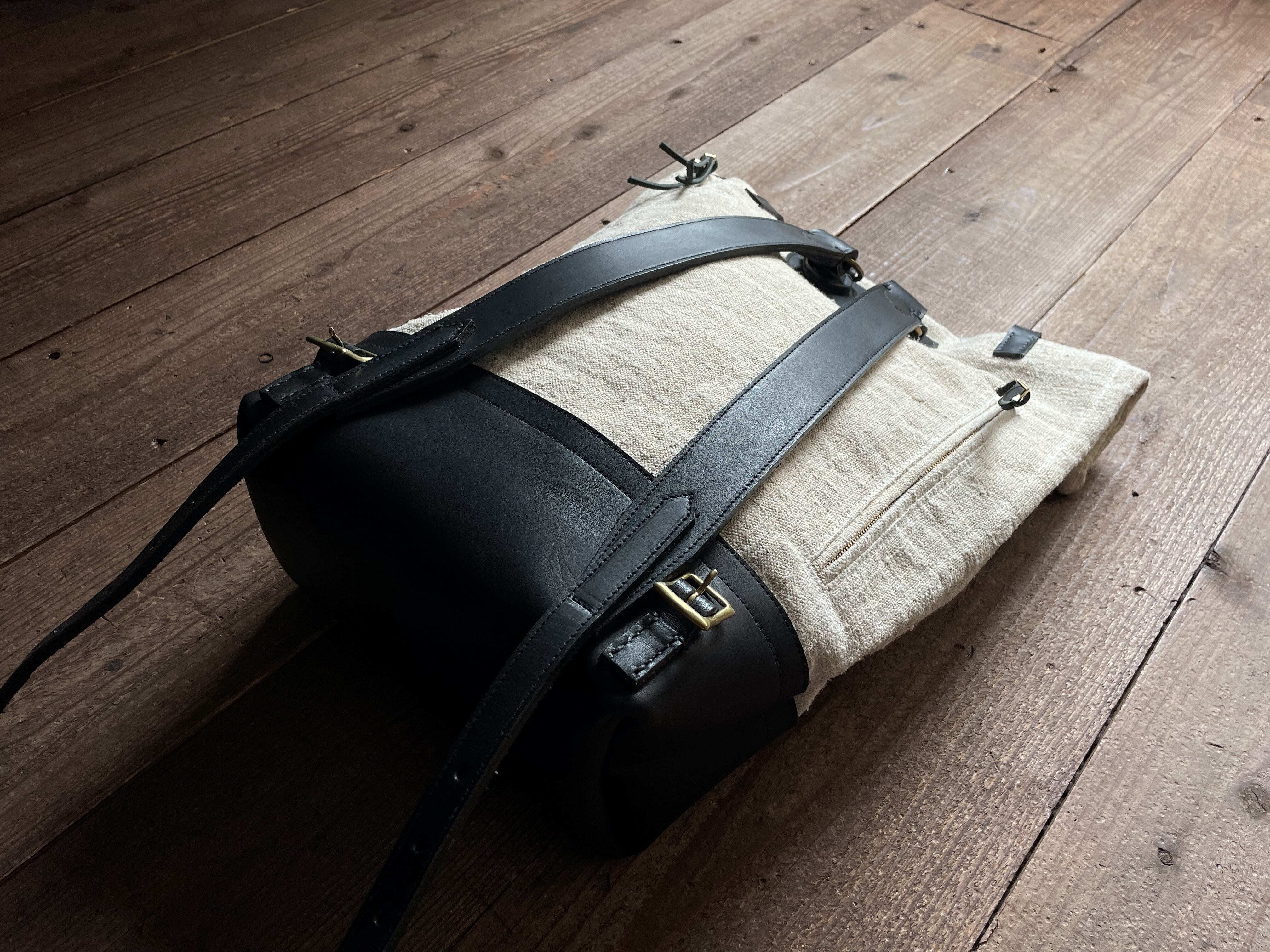 約100年前、ハンガリーの農民が手織りしたホームスパンリネン生地が少量手に入ったとの事で制作して頂いた、特別なアイテム。