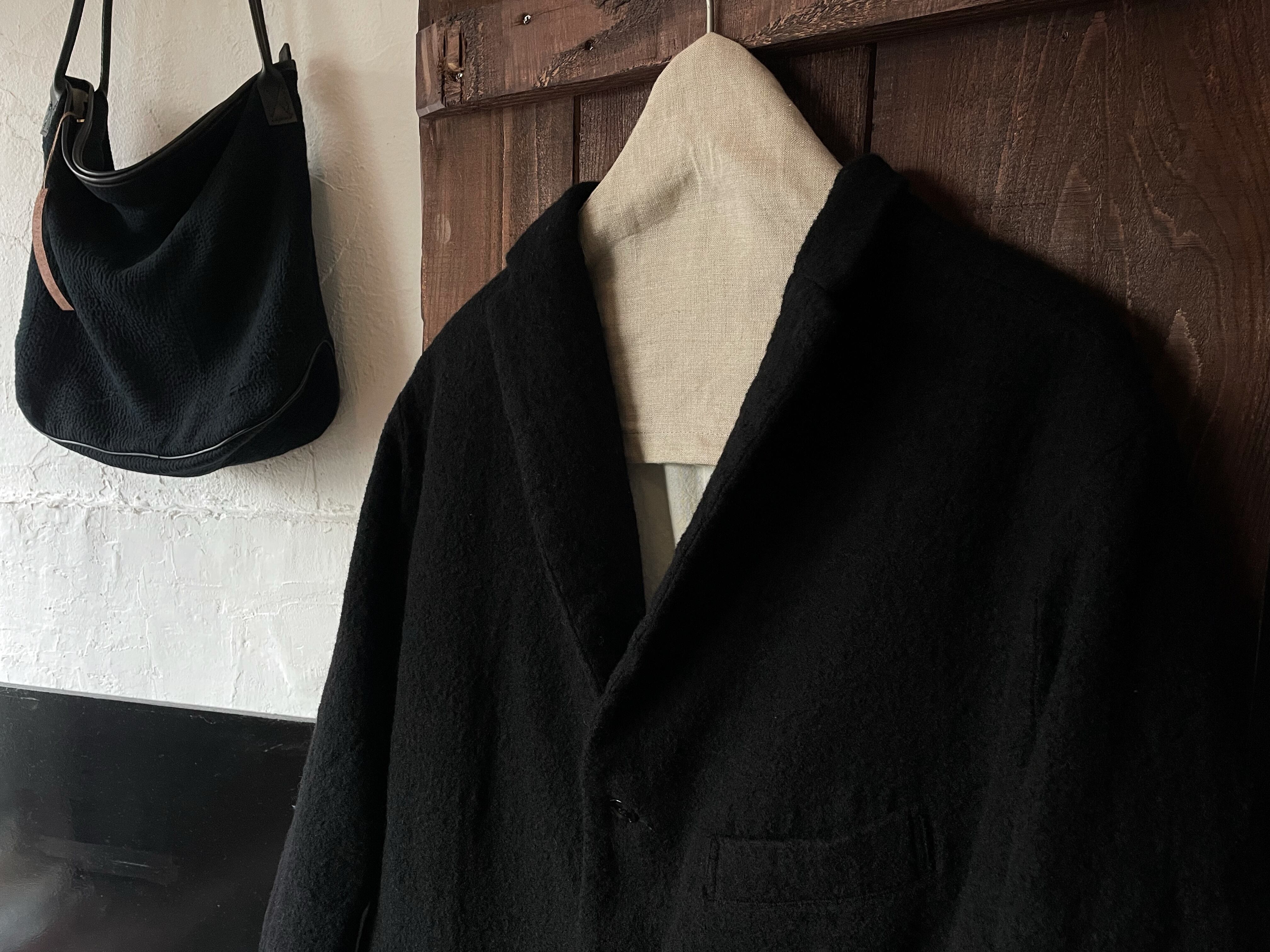 ⻑年丁寧に着込んだような、あたたかみのあるウール感を表現する為、 織りの段階で起毛させ最後に特別な縮絨加工を施しており、柔らかで風合いのある表情に 仕上げております。