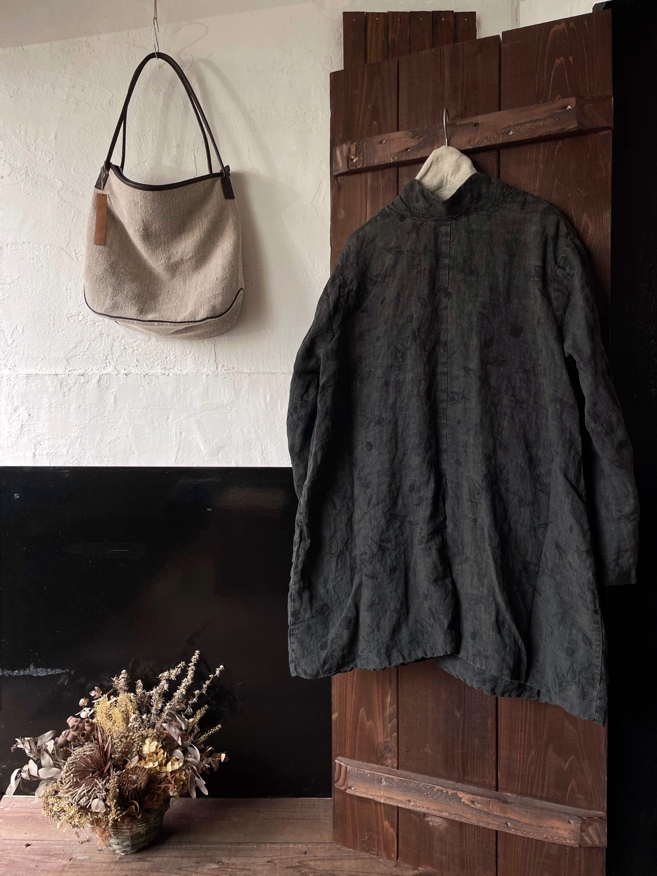 近江の後に上から墨染をし、更に製品洗いを施すことで深みのある表情に