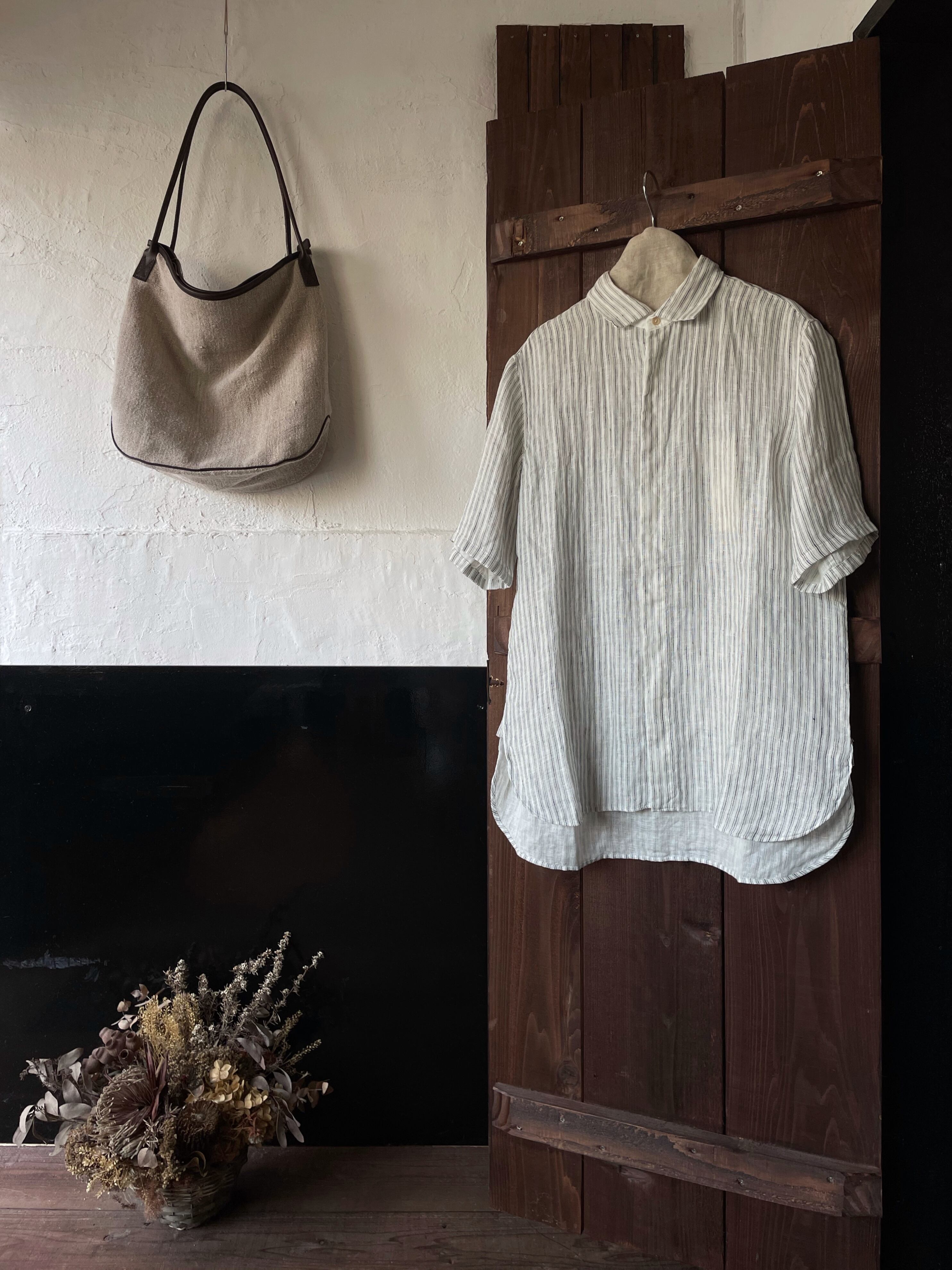 suzuki takayuki short-sleeve shirt drizzling (nude stripe) s223-01