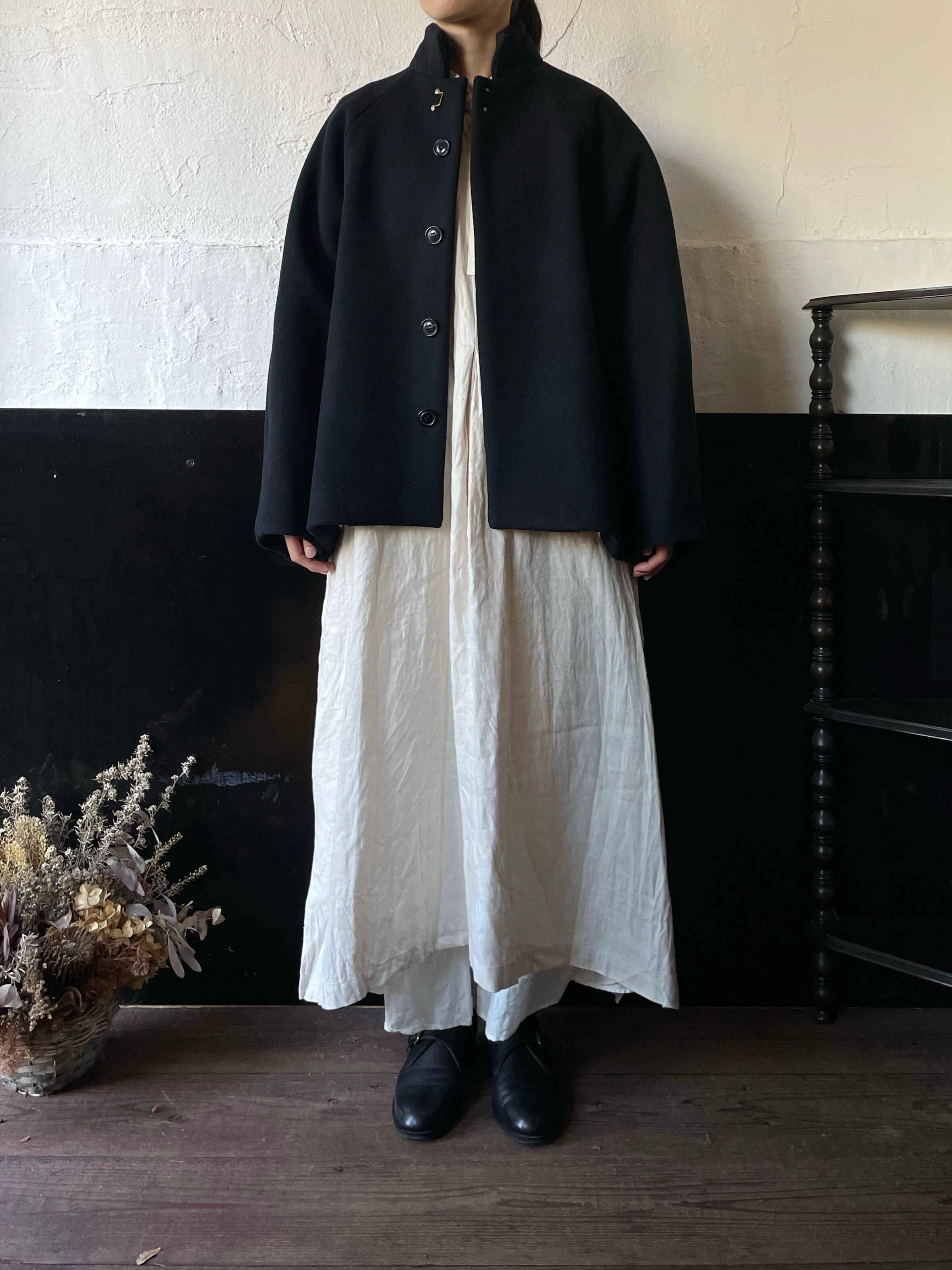 身幅を持たせたゆったりとしたシルエットの、ショート丈コートです。