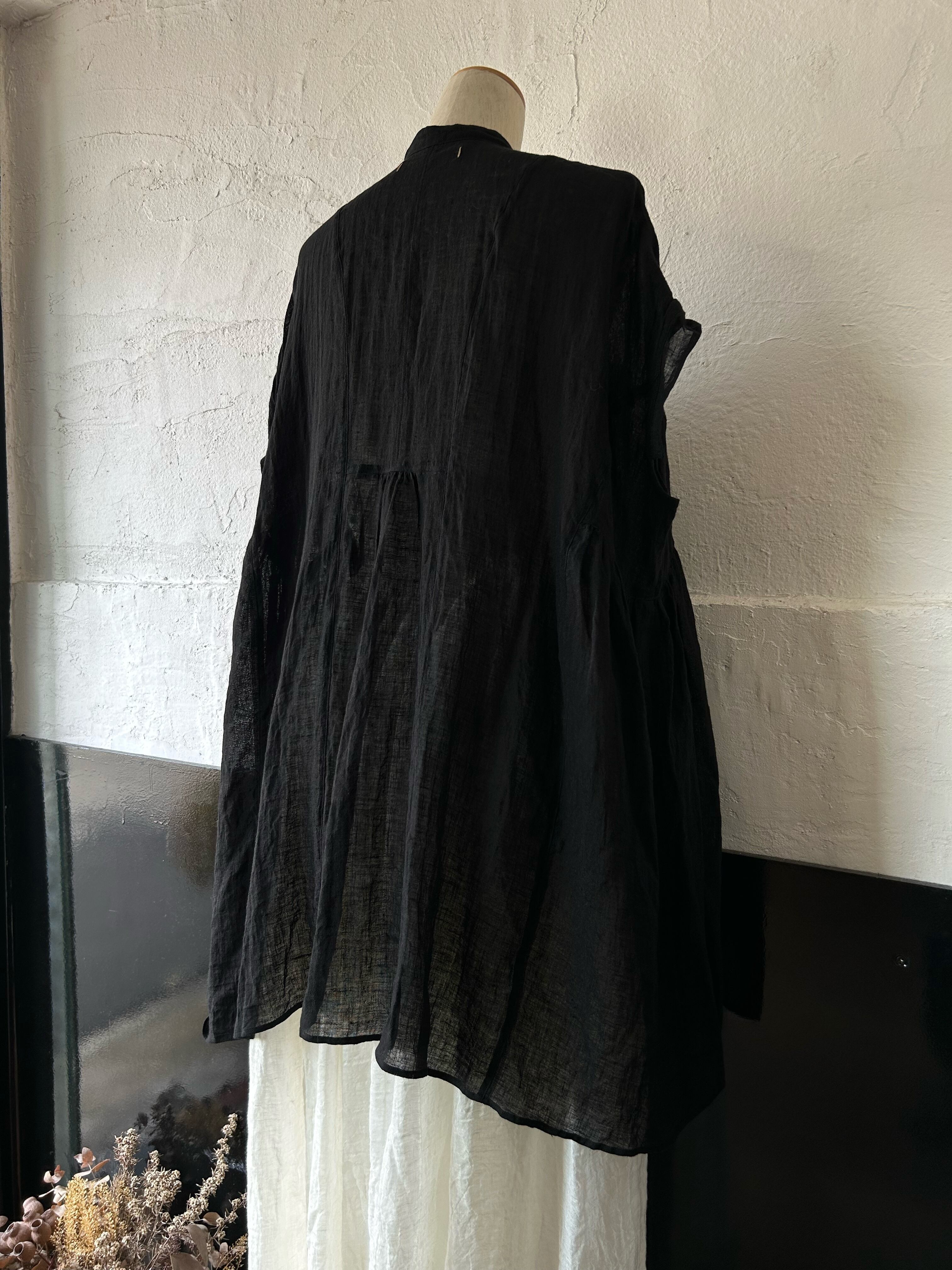奥行きのあるリネンガーゼ生地の表情、作り出す陰影が魅力、culotte pantsとセットアップでの着用もおすすめです。