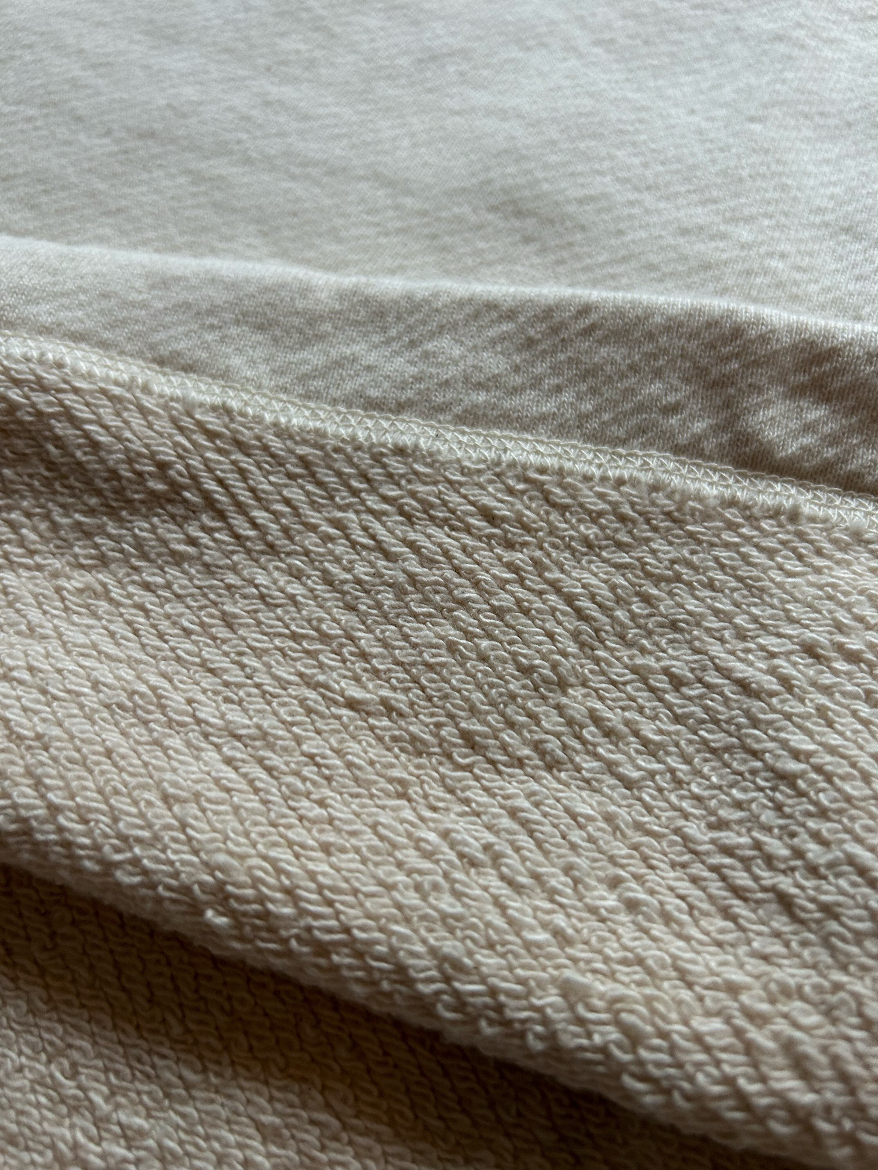 裏毛のスエットではなく、内側をタオルのようなパイルにすることで、糸そのものの個性をより一層感じることのできる上質な素材です。