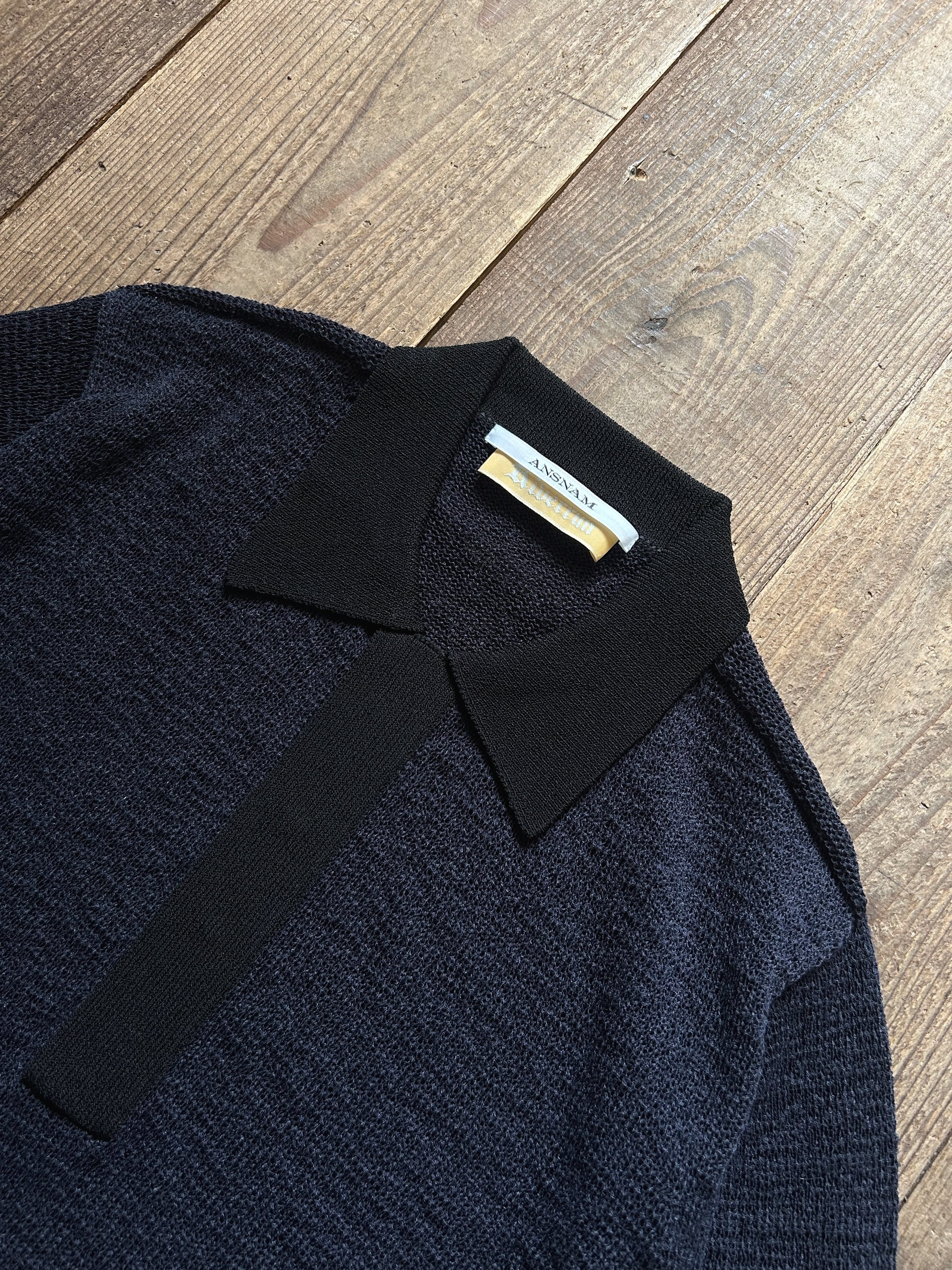 ANSNAM riverrun tape yarn knit polo shirt navy
