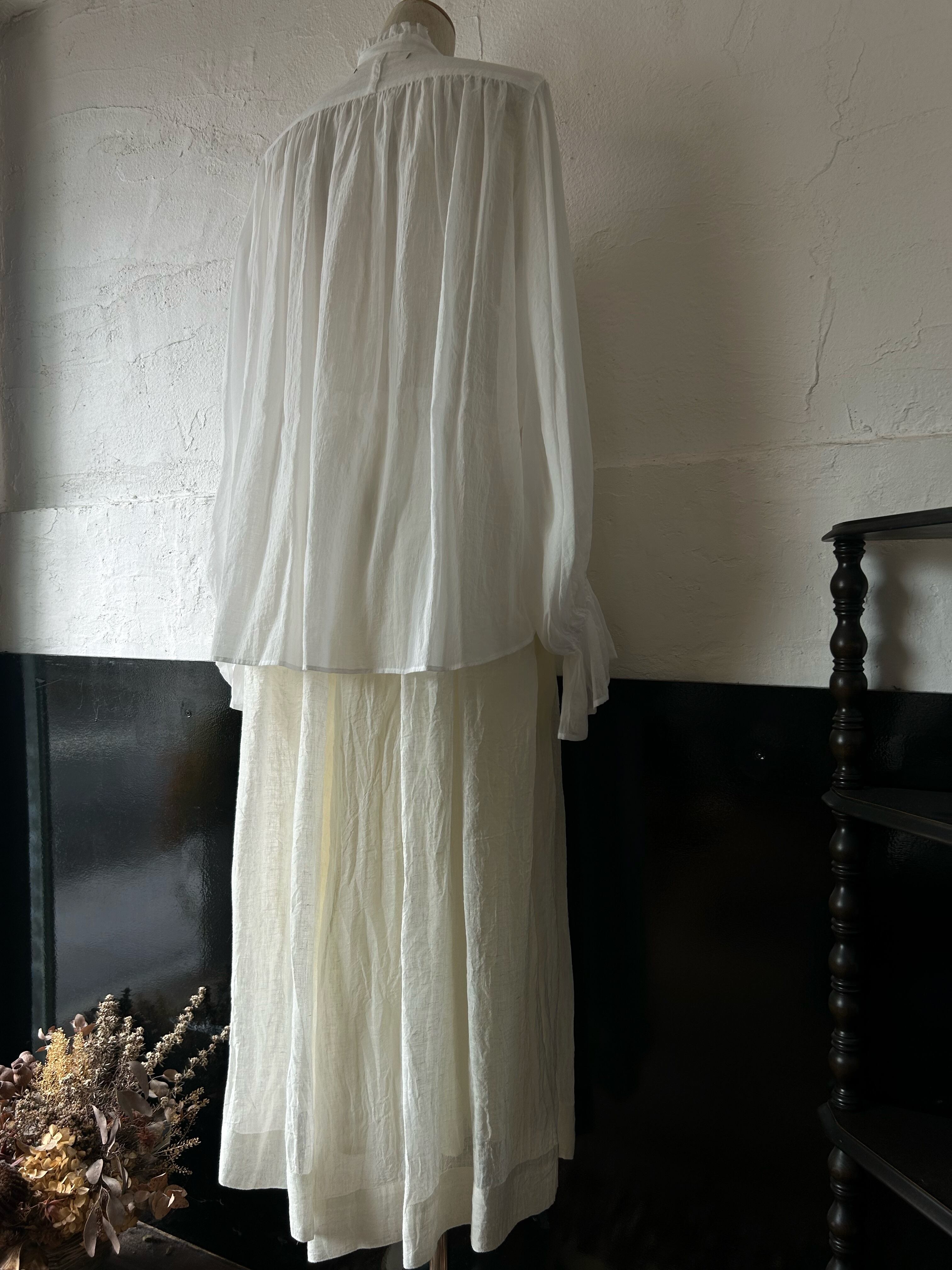 形としてはとてもエレガントなシルエットになりますが、非常に柔らかなコットンシフォンの素材を使用しているため、エレガントさもありながら、日常使いもしていただきやすいアイテムになります。