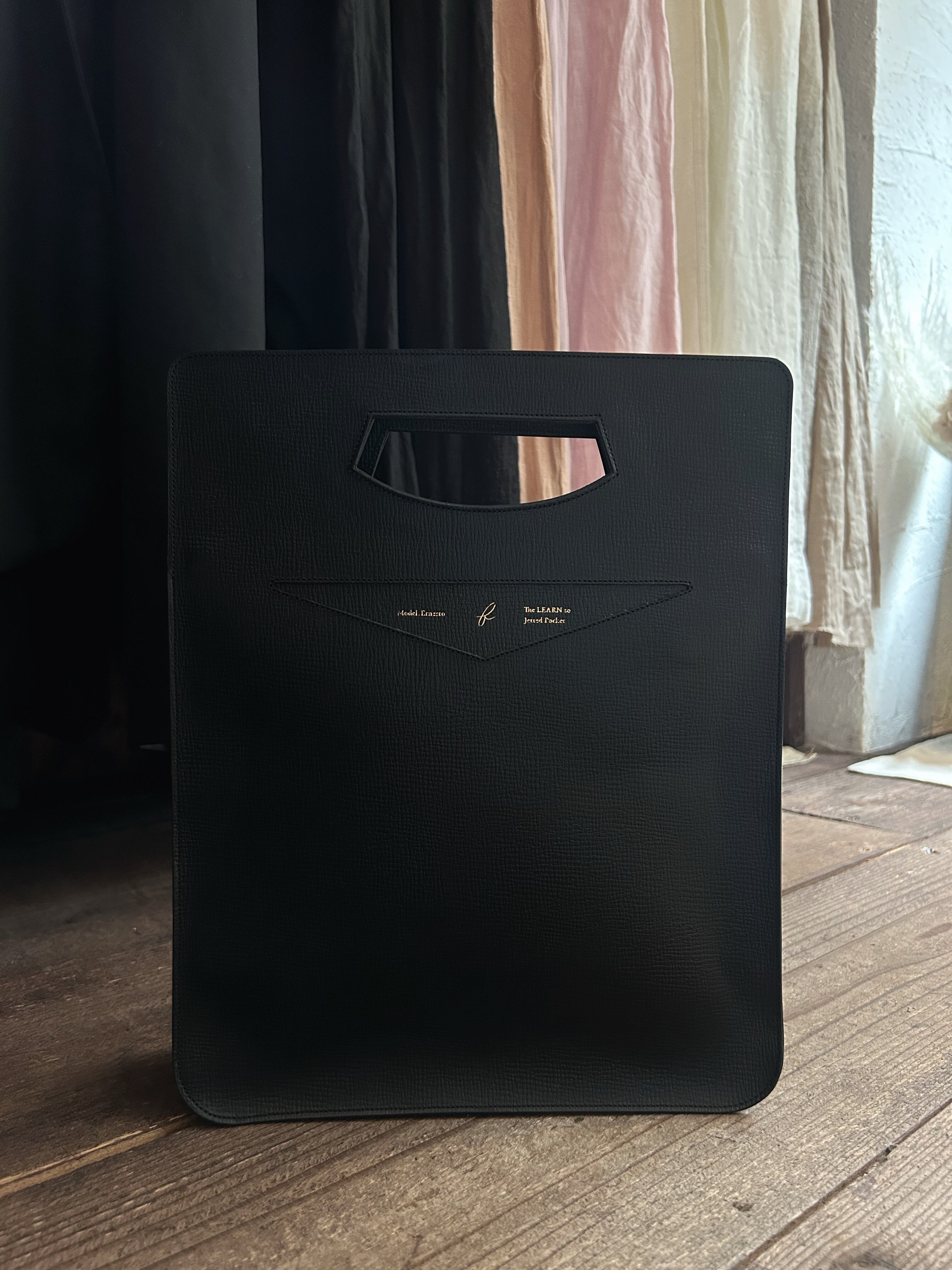 贅沢にもカーフに型押しを施したserpentineを使用し、吊り下げポケットにはしっかりとした質感とツヤ感のあるコットンツイルを、ボタンは本水牛の猫目ボタンを使用しています。