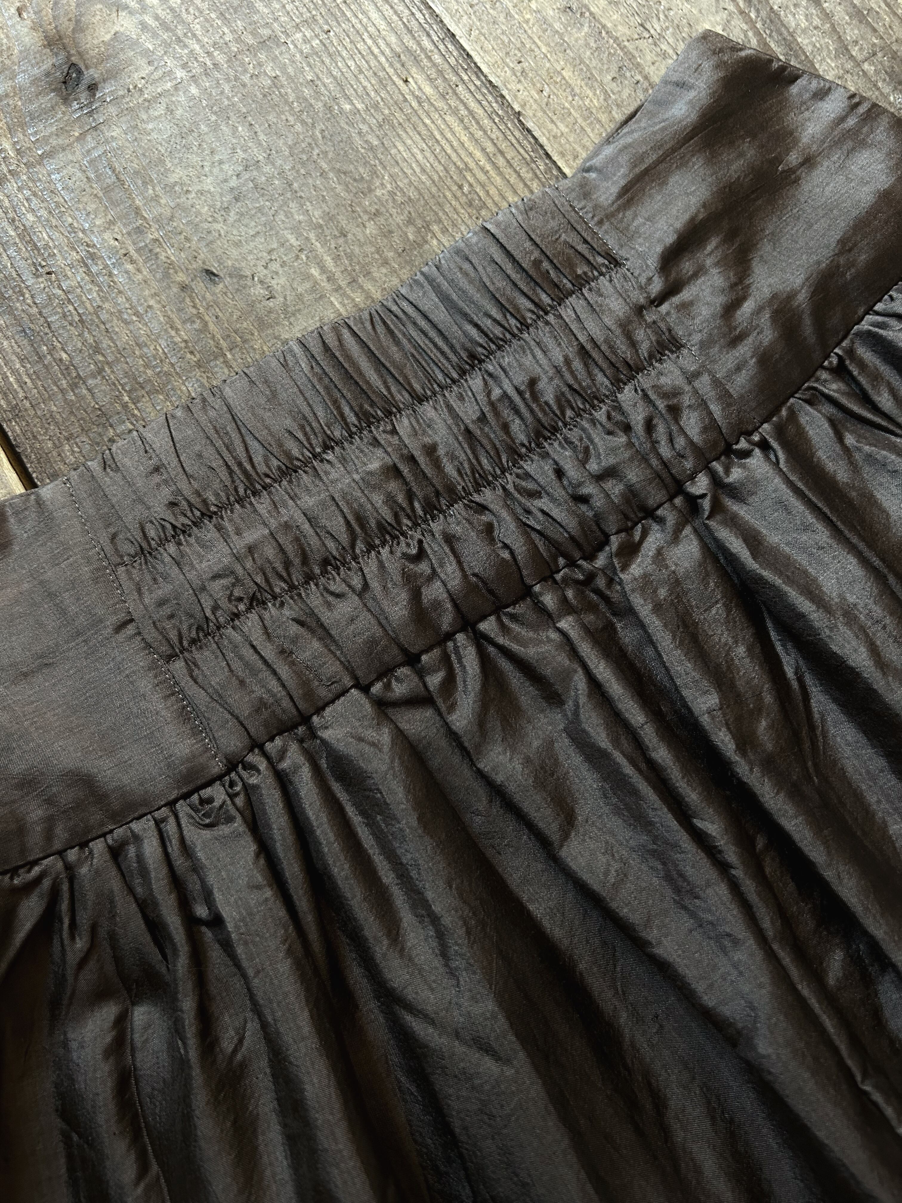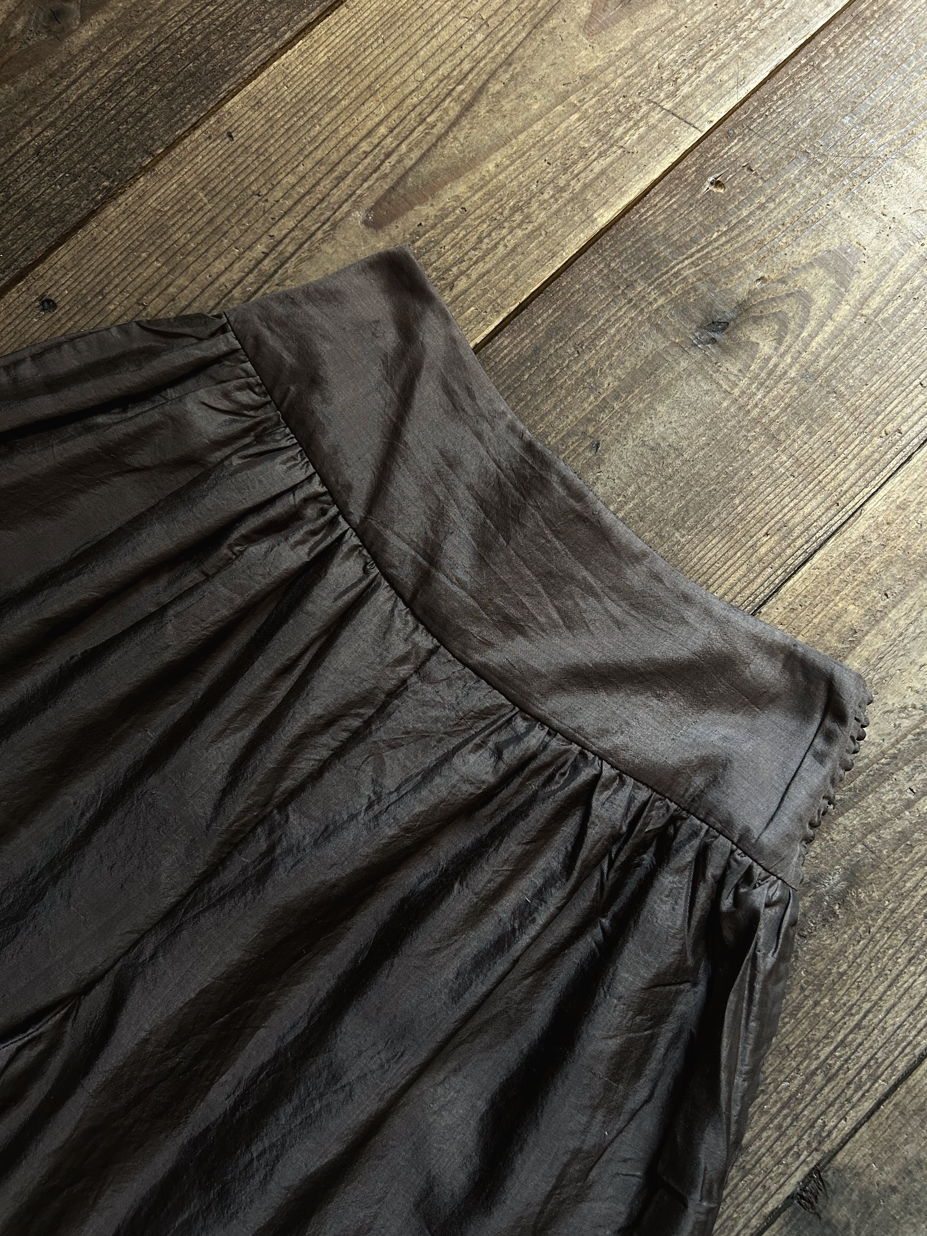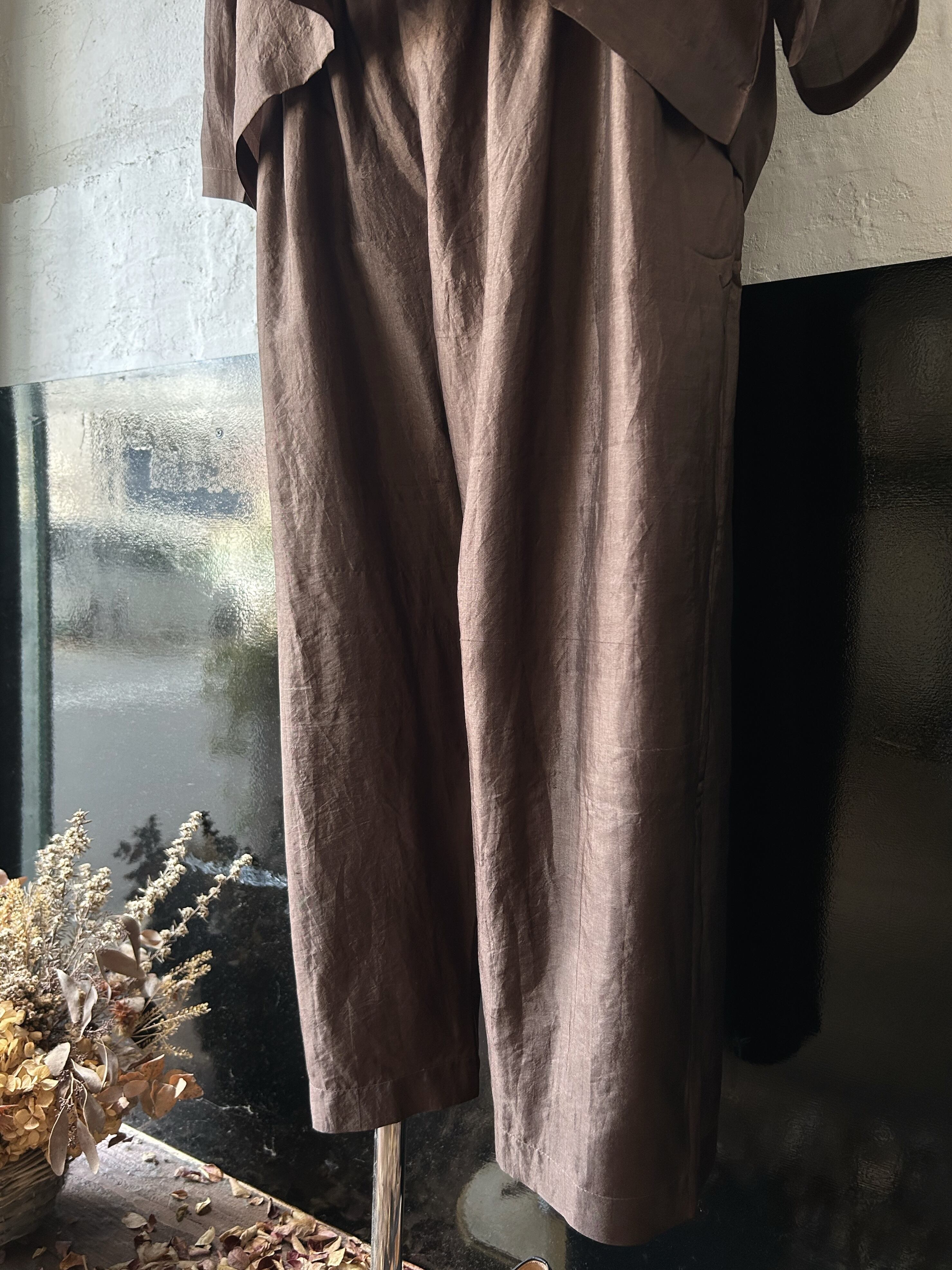 定番的に展開している、手紡ぎ手織りのカディシルクを使用したワイドシルエットのパンツです。