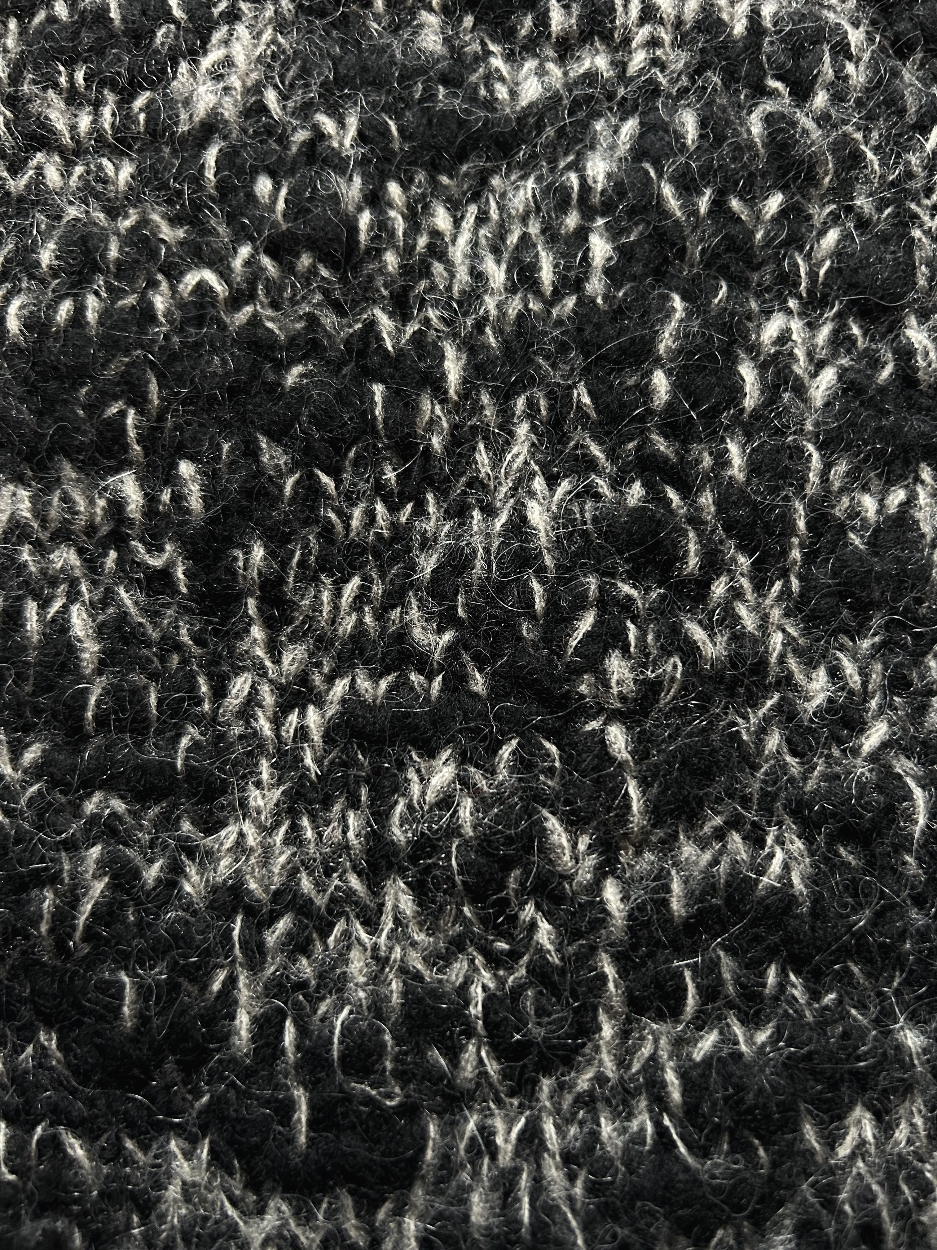 手編みならではの風合いと迫力、パターンもANSNAMらしく、ボリュームがありながらもシャープな見え方です。