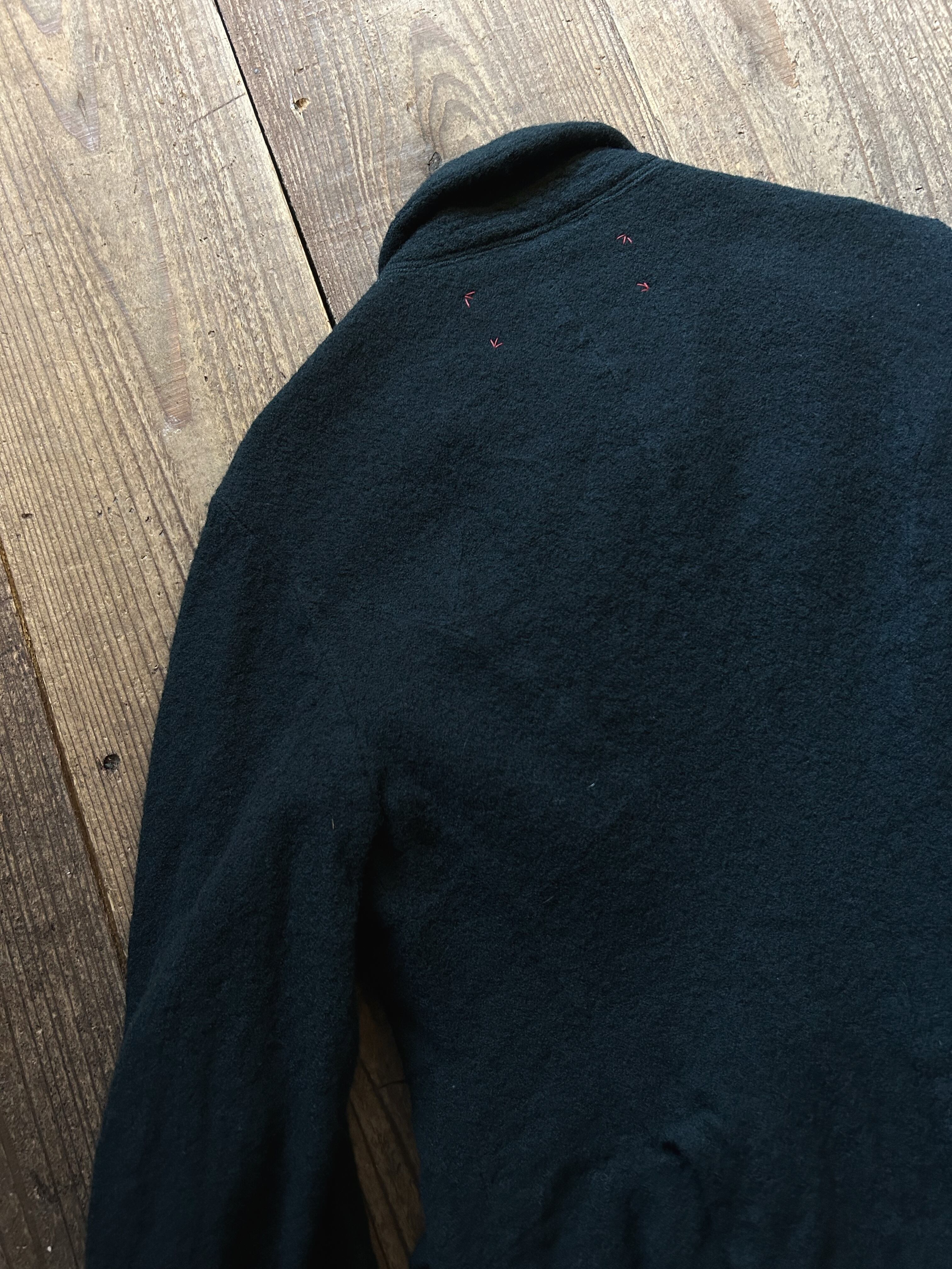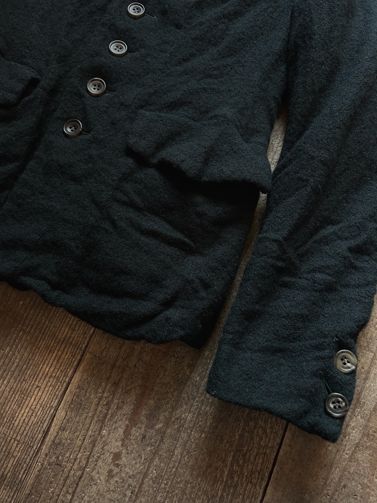 シンプルに縮絨をすることで着込まれて洗い込まれたヴィンテージウール生地を再現 無染色の自然の色合いが美しい羊毛のOff WhiteとBrown と 黒に染色したBlack、こちらは別注カラーのDark Green