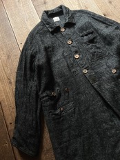 生地の段階で縮絨を施し、さらに製品洗いもかけている為、ウールリネンのコートにも関わらず洗濯機で洗えます。